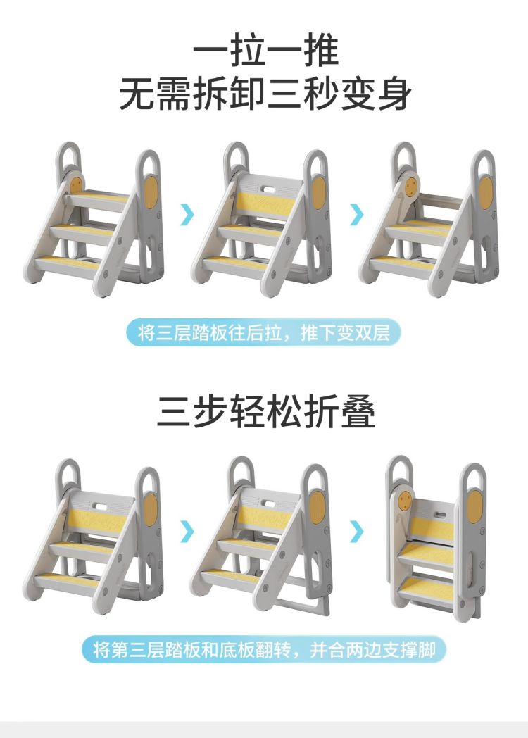 *【曼龙】踩脚凳学习塔儿童洗漱宝宝洗手台阶凳可折叠防滑踏脚登高凳子