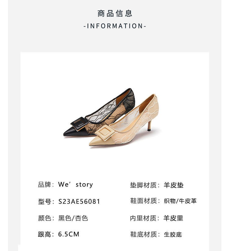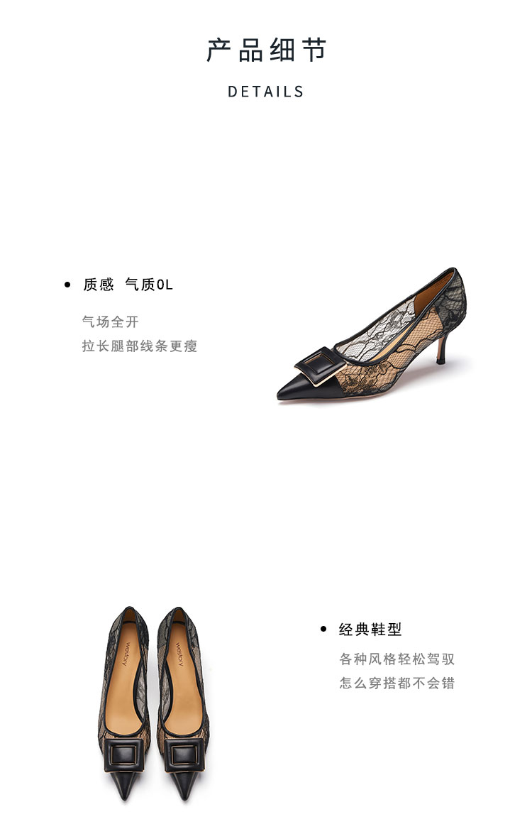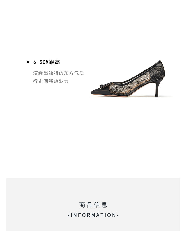 【23年夏季新款】蕾丝性感网面浅口单鞋尖头细高跟鞋透气单鞋女56081