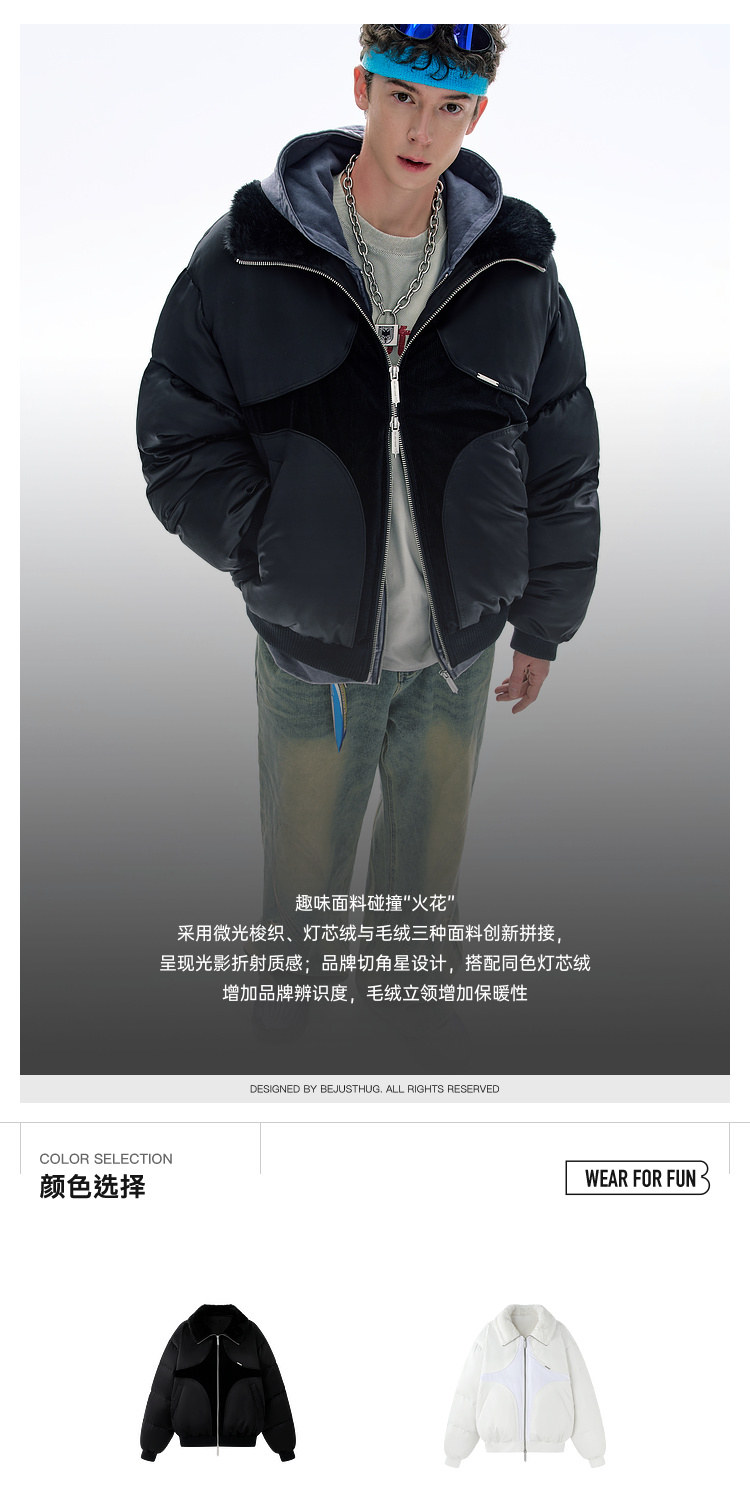 BJHG不计后果羽绒服男款冬季新款加厚外套情侣灯芯绒翻领防寒服女