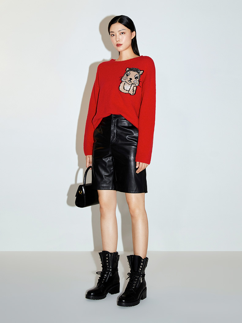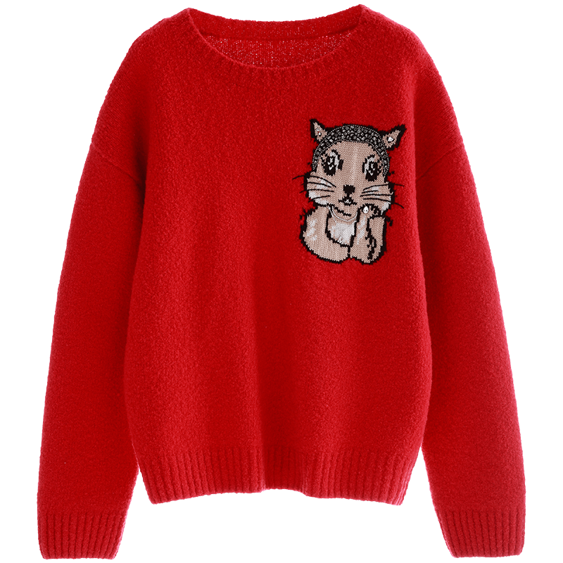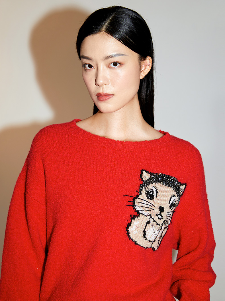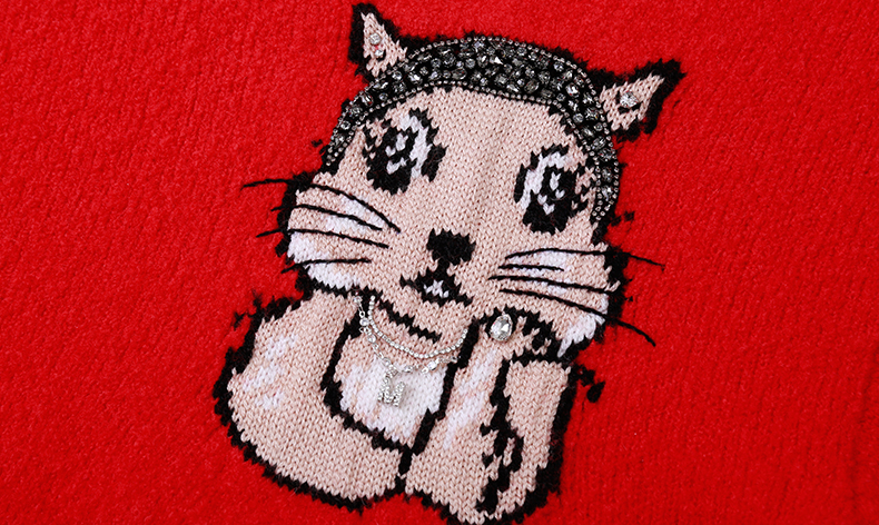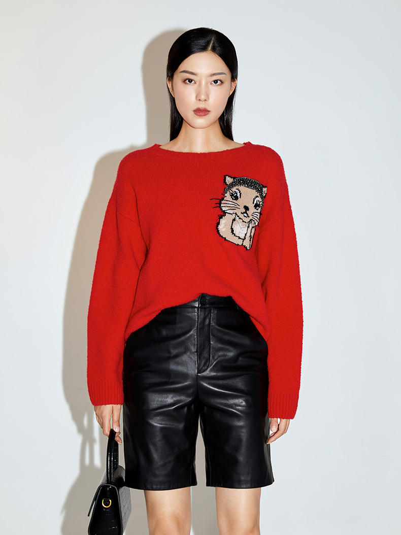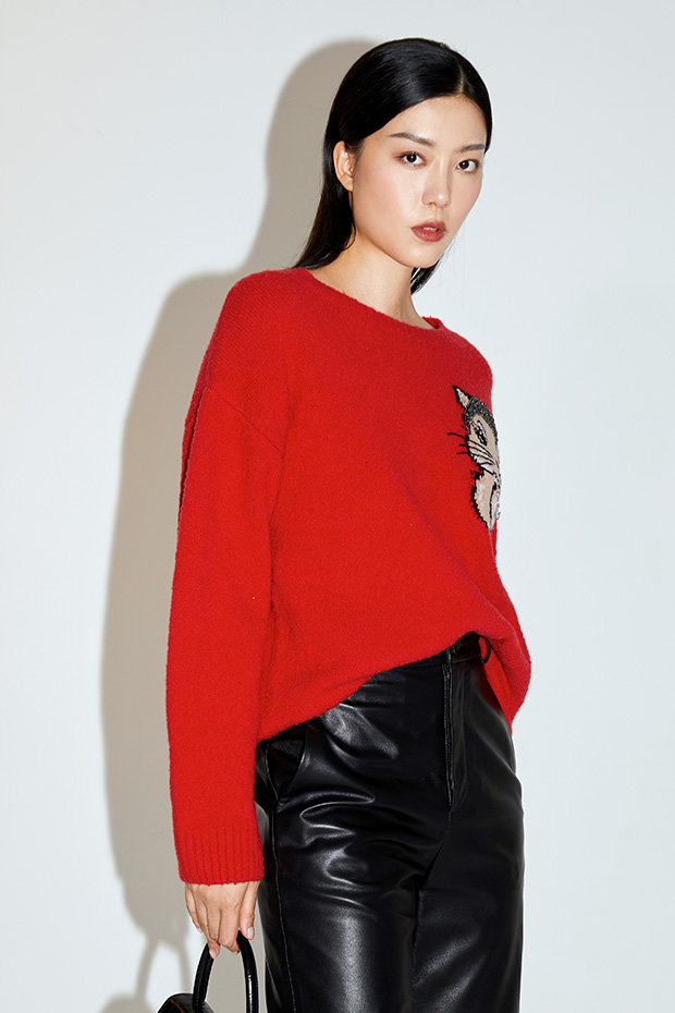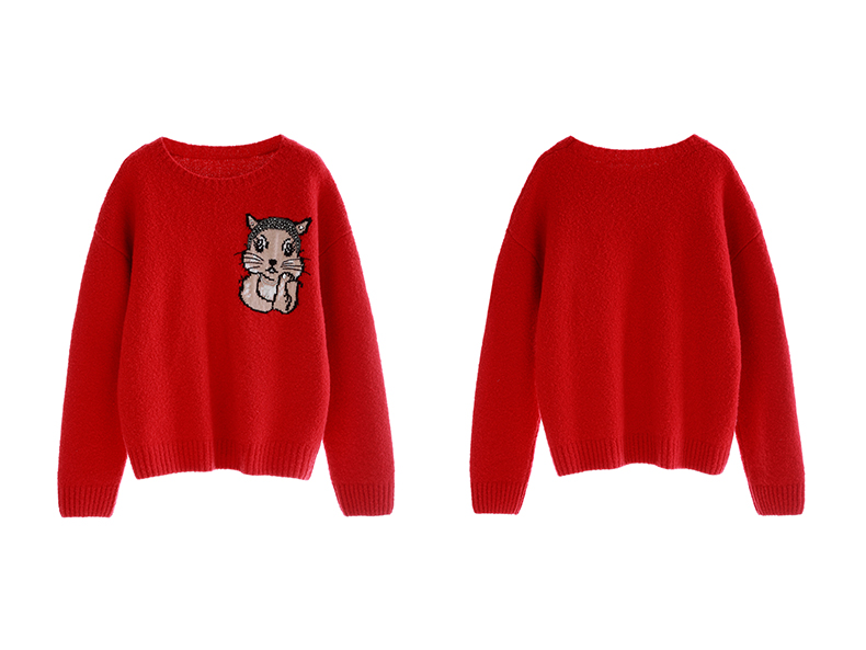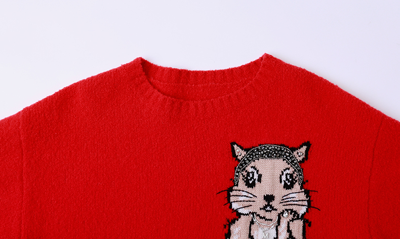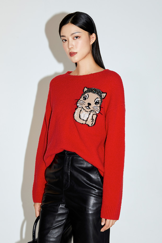 Miss Sixty2020冬季新款钉钻松鼠图案圆领套头毛衣女604RJ7340000