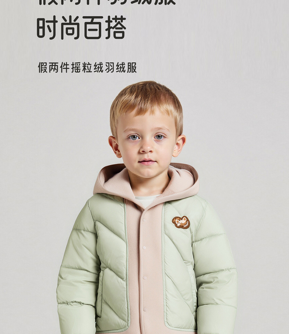 英氏儿童羽绒服秋冬季保暖防寒男童连帽外套撞色上衣YRWSJ4R021A
