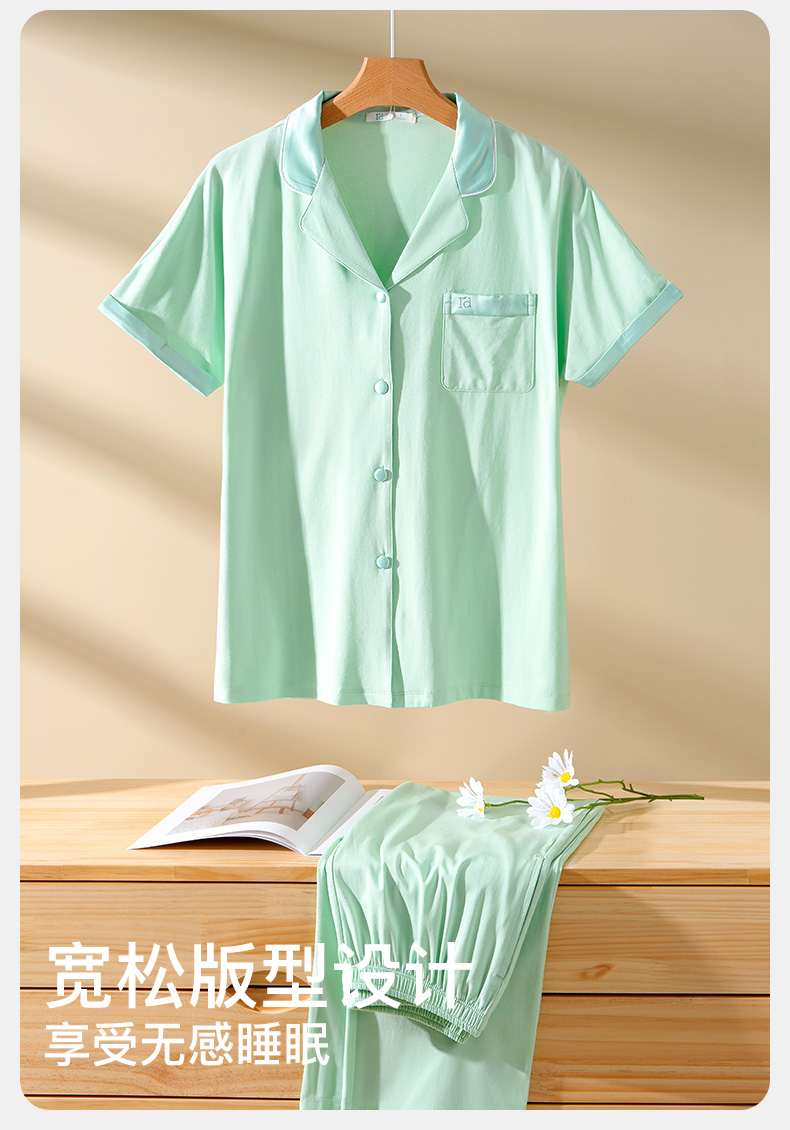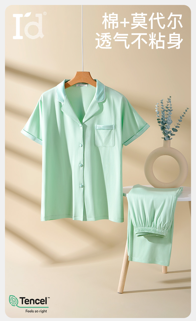 I'd爱帝女士莫代尔棉短袖长裤翻领家居服套装