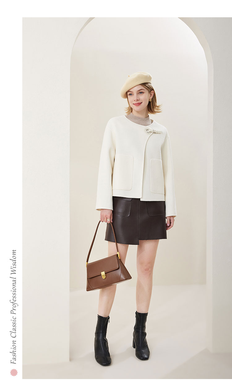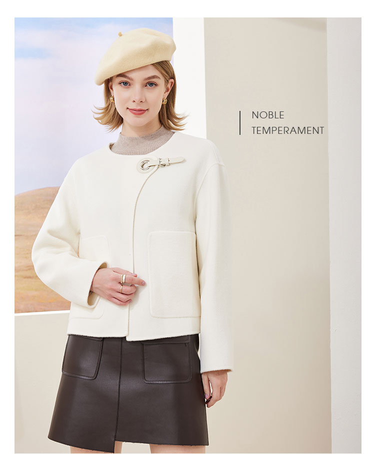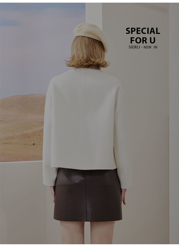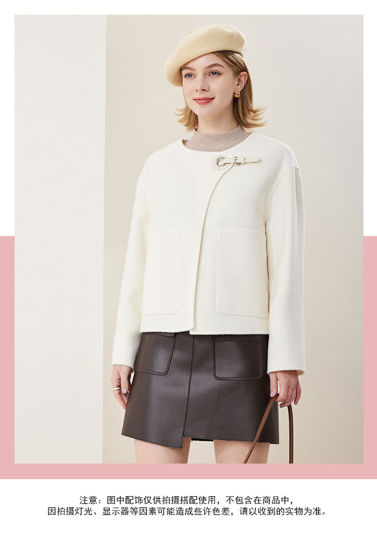 MH9N4斯尔丽瑟俪2022年冬上新商场同款精致圆领宽松时尚皮搭扣夹克大衣
