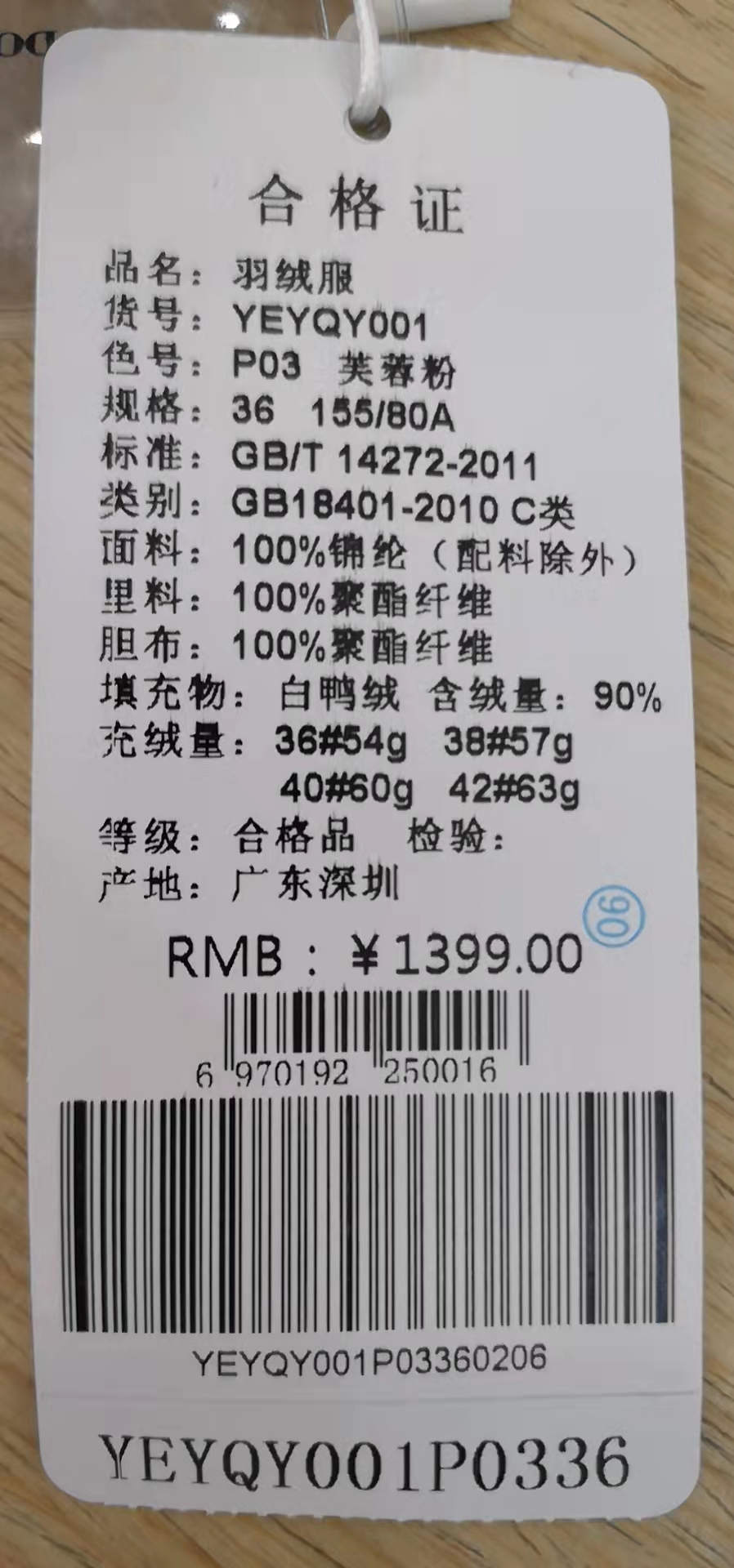 南2依伽依佳羽绒服yeyqy001 商品图1