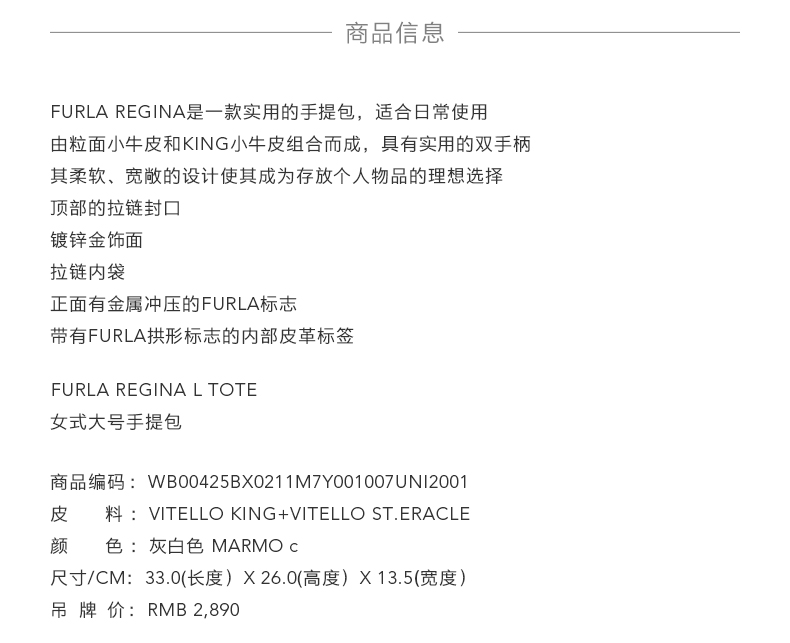 FURLA芙拉 REGINA 女式大号简约气质托特包手提包