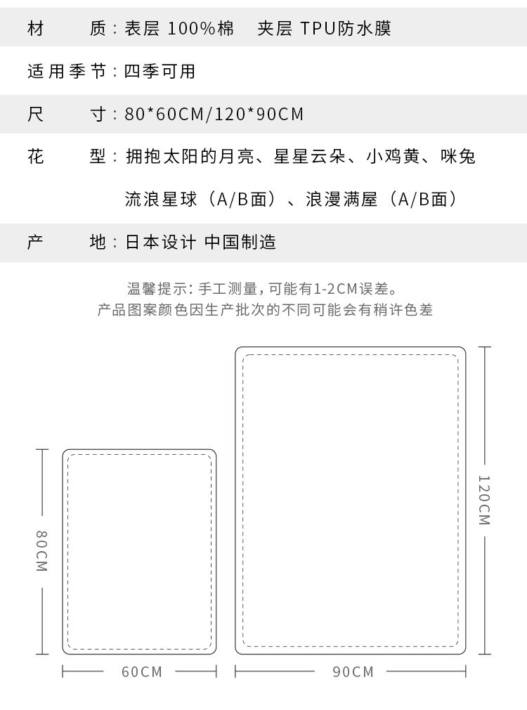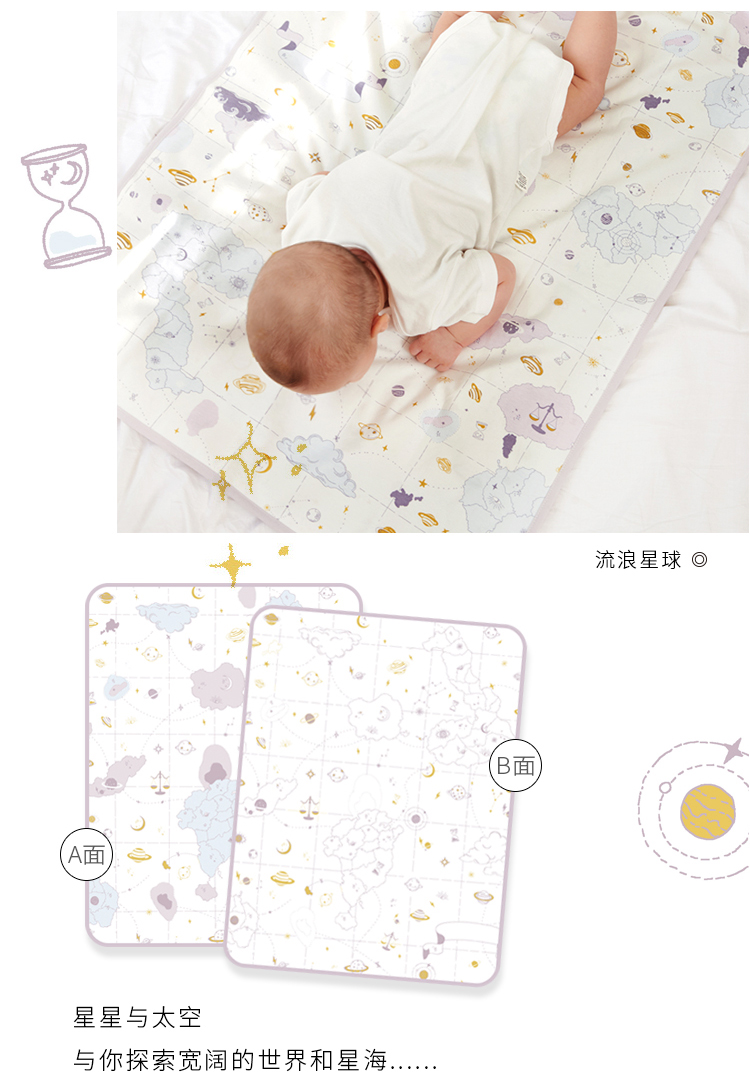 yikyak双面隔尿垫防水可洗透气婴儿童纯棉新生宝宝护理床垫大尺寸