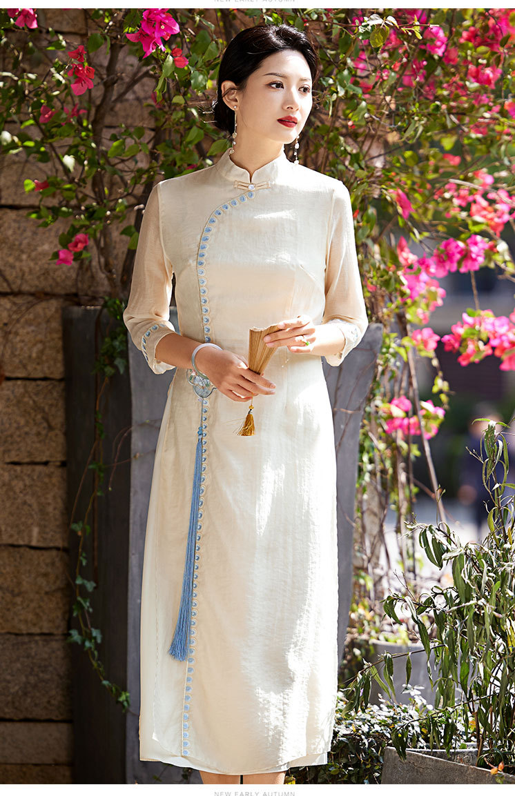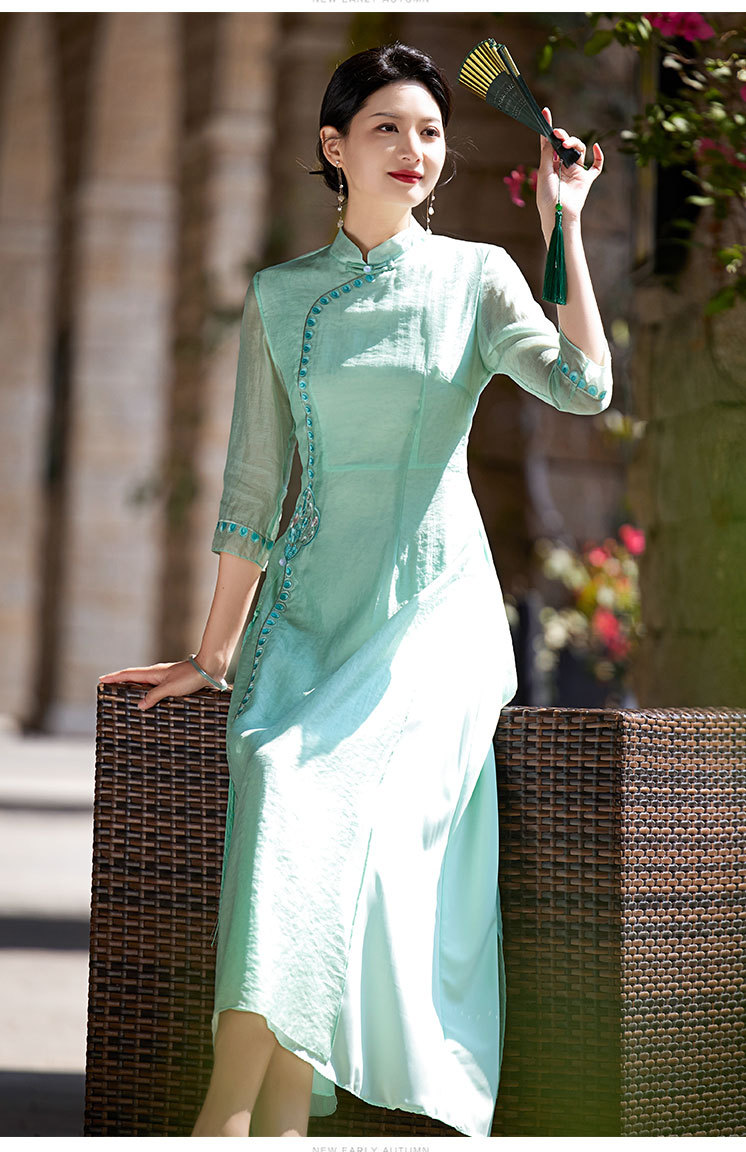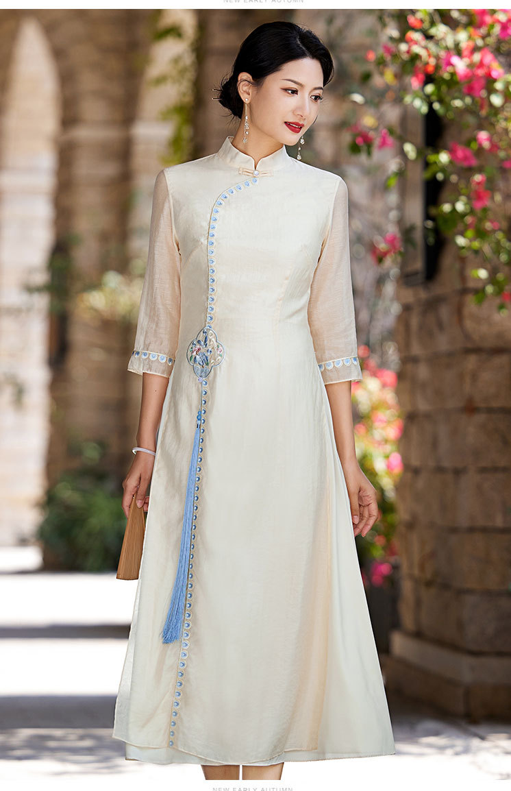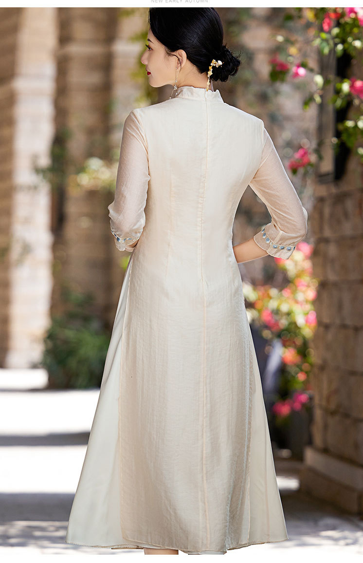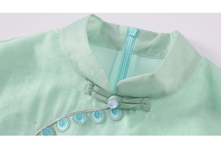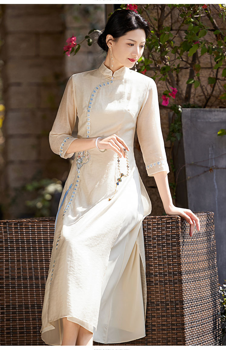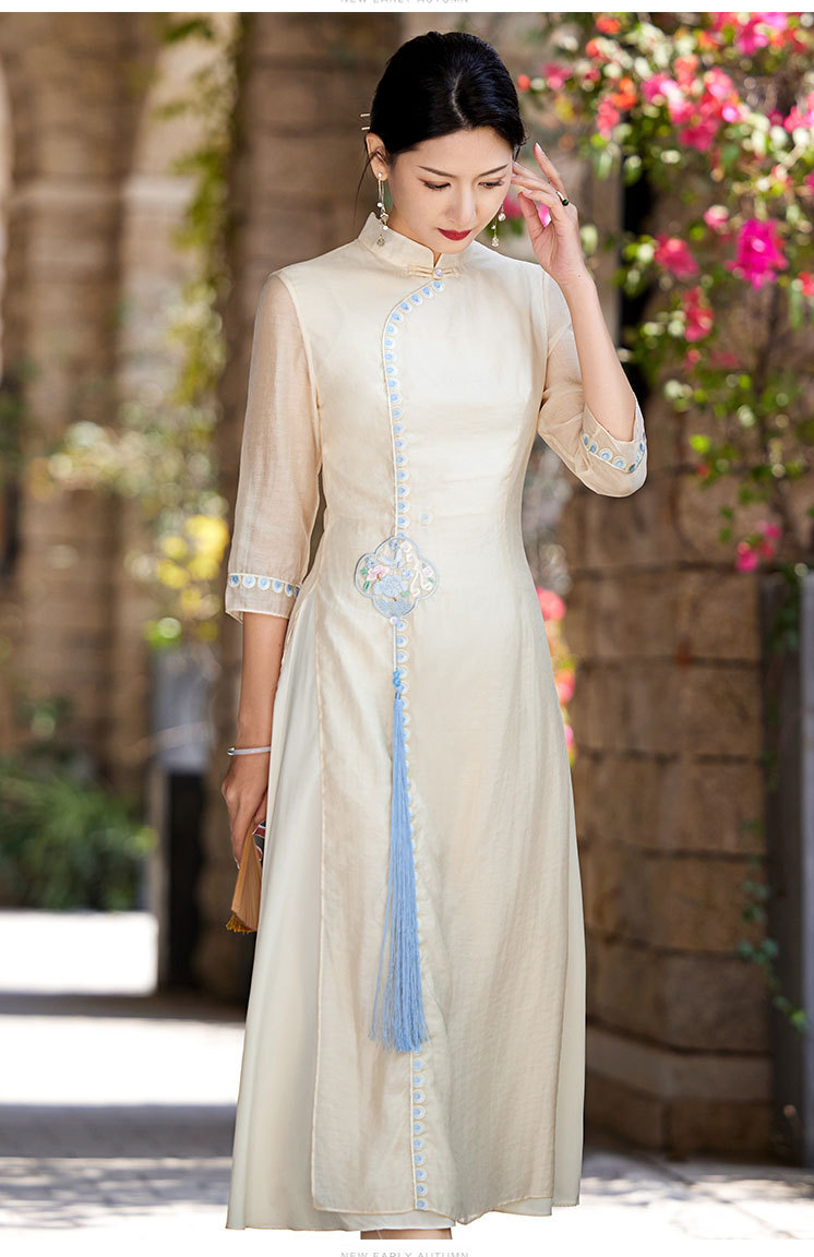 复古民族风,新中式改良旗袍修身假两件奥黛立领国潮刺绣连衣裙OG-6041