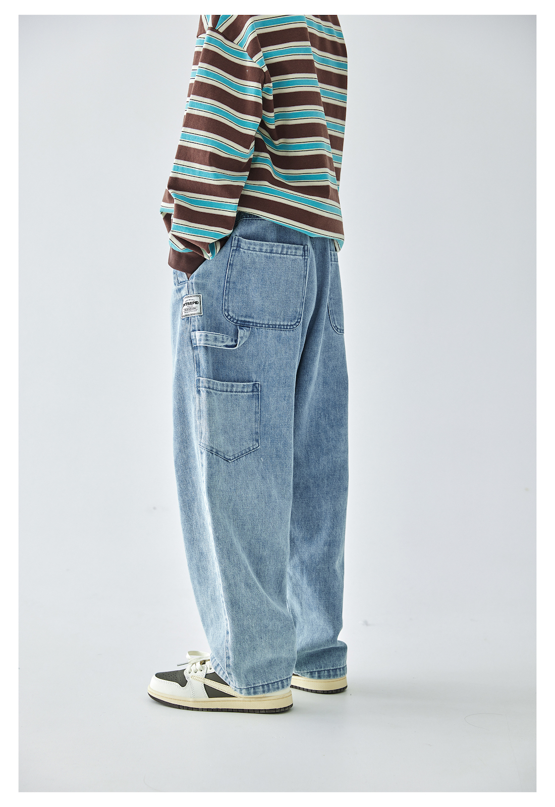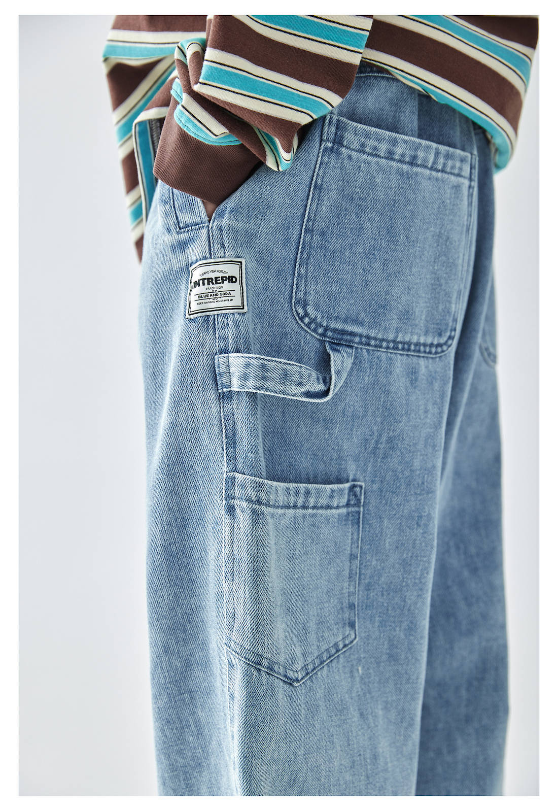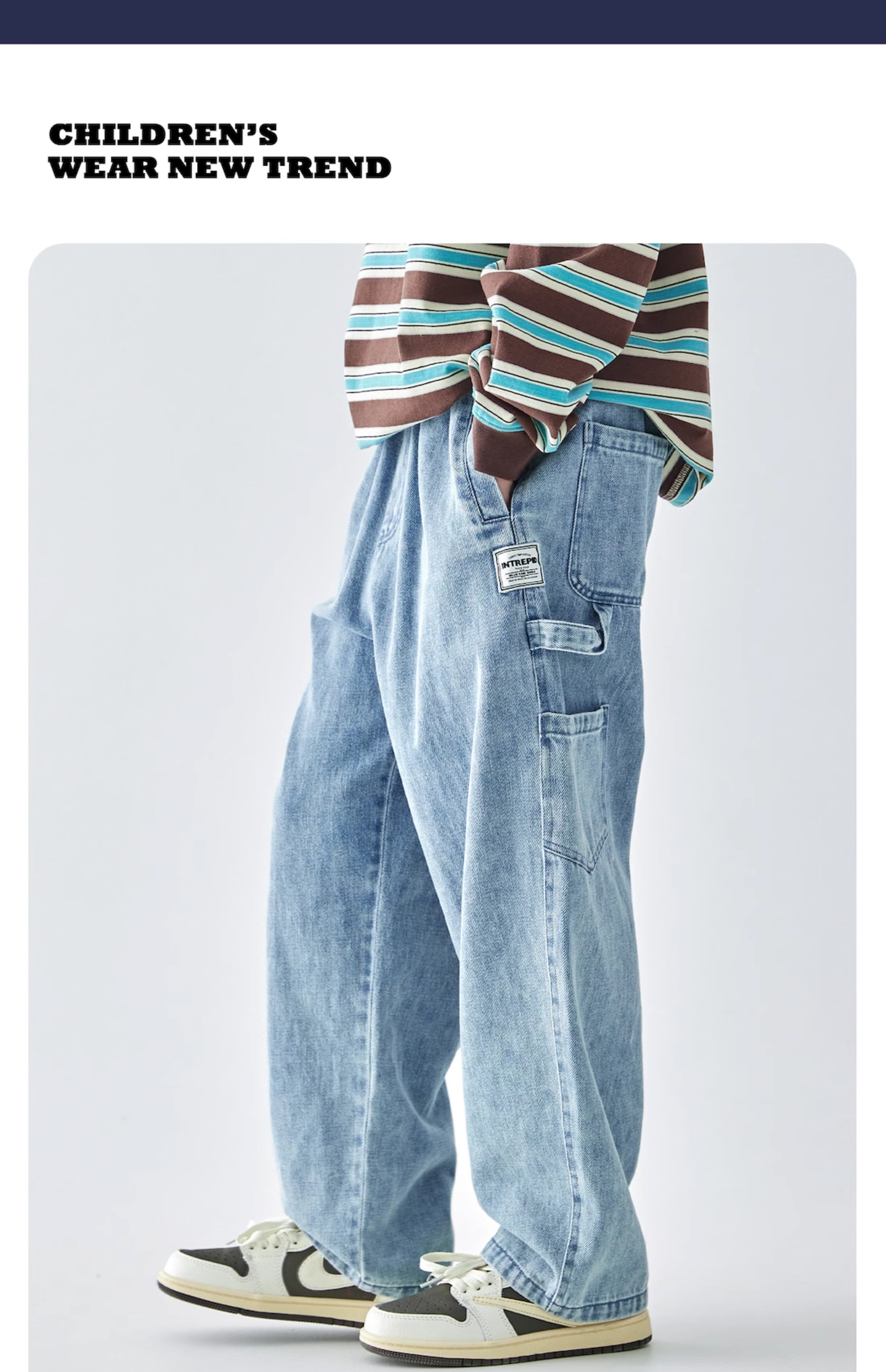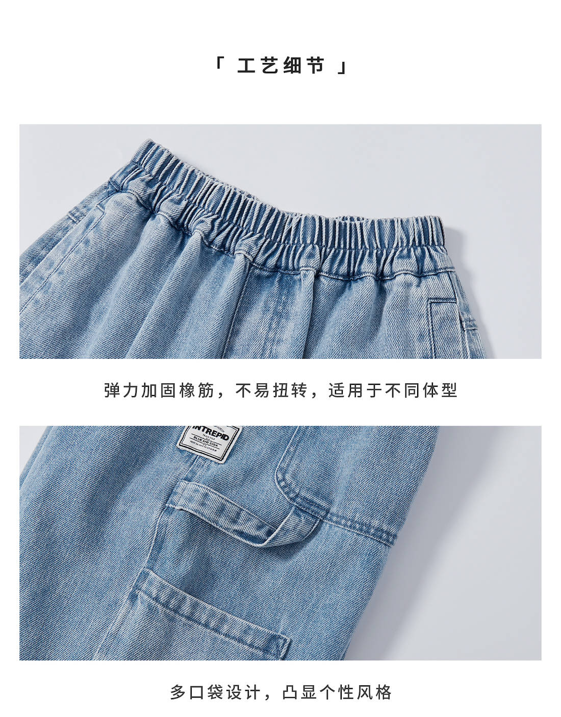【代发】男款多口袋牛仔裤 蓝汽水多口袋宽松牛仔裤男童复古蓝做旧色调休闲长裤子