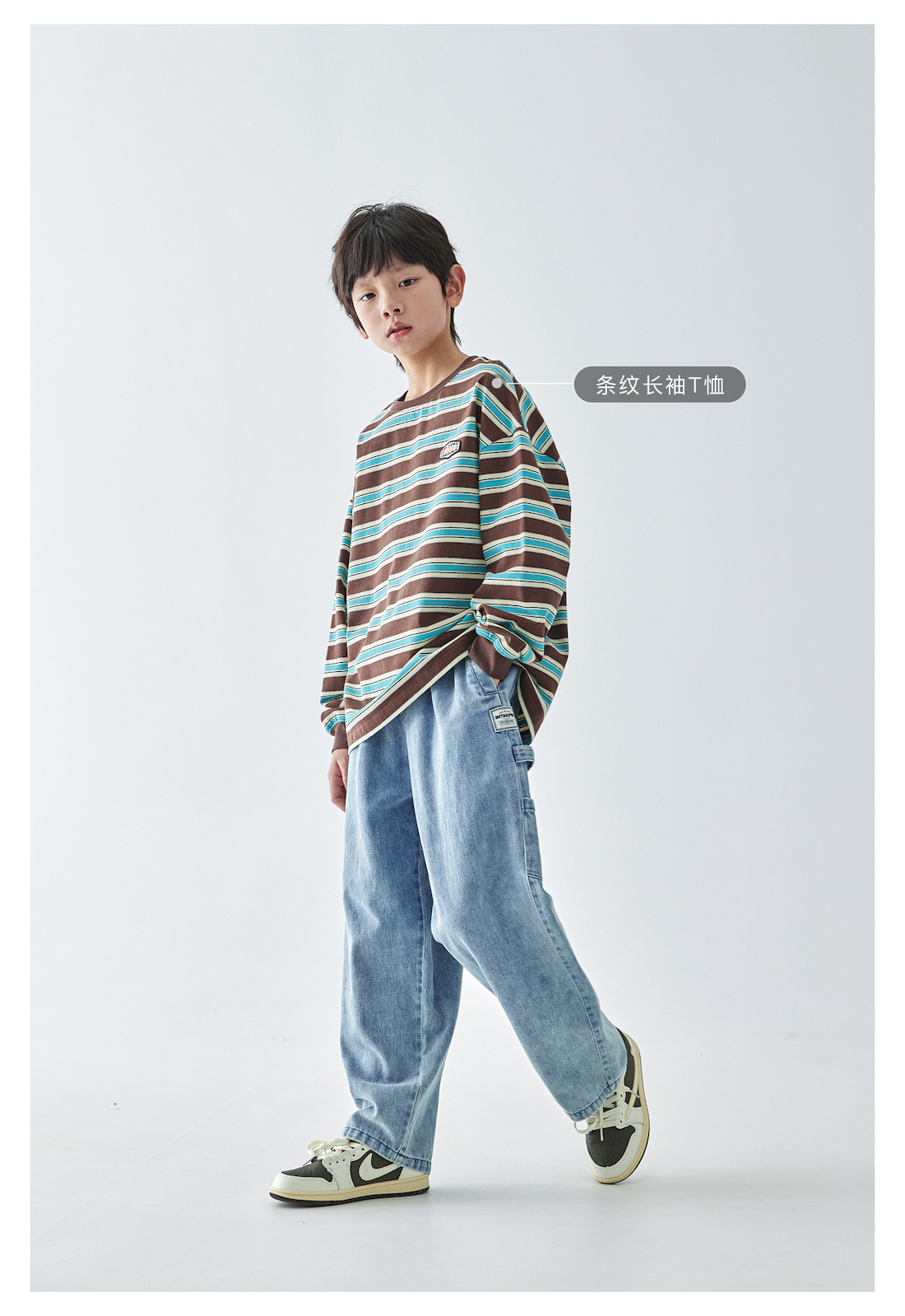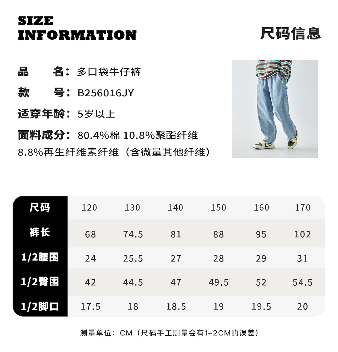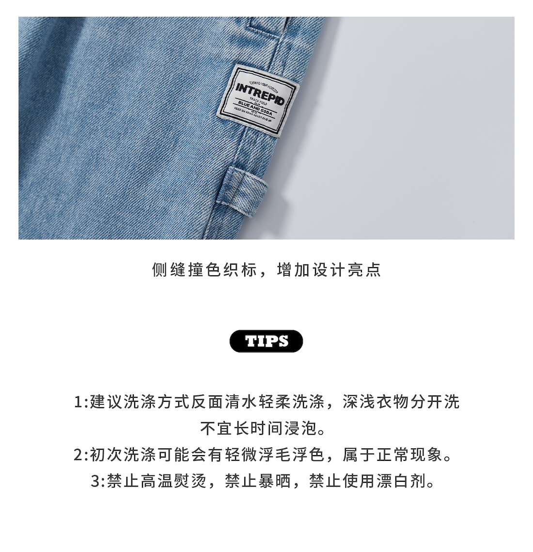 【代发】男款多口袋牛仔裤 蓝汽水多口袋宽松牛仔裤男童复古蓝做旧色调休闲长裤子