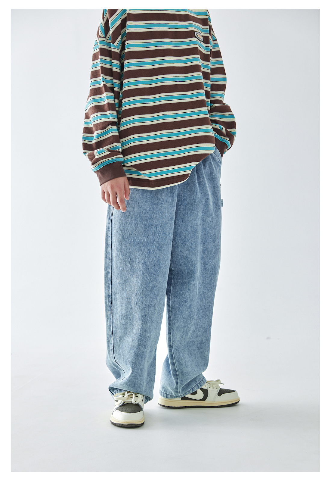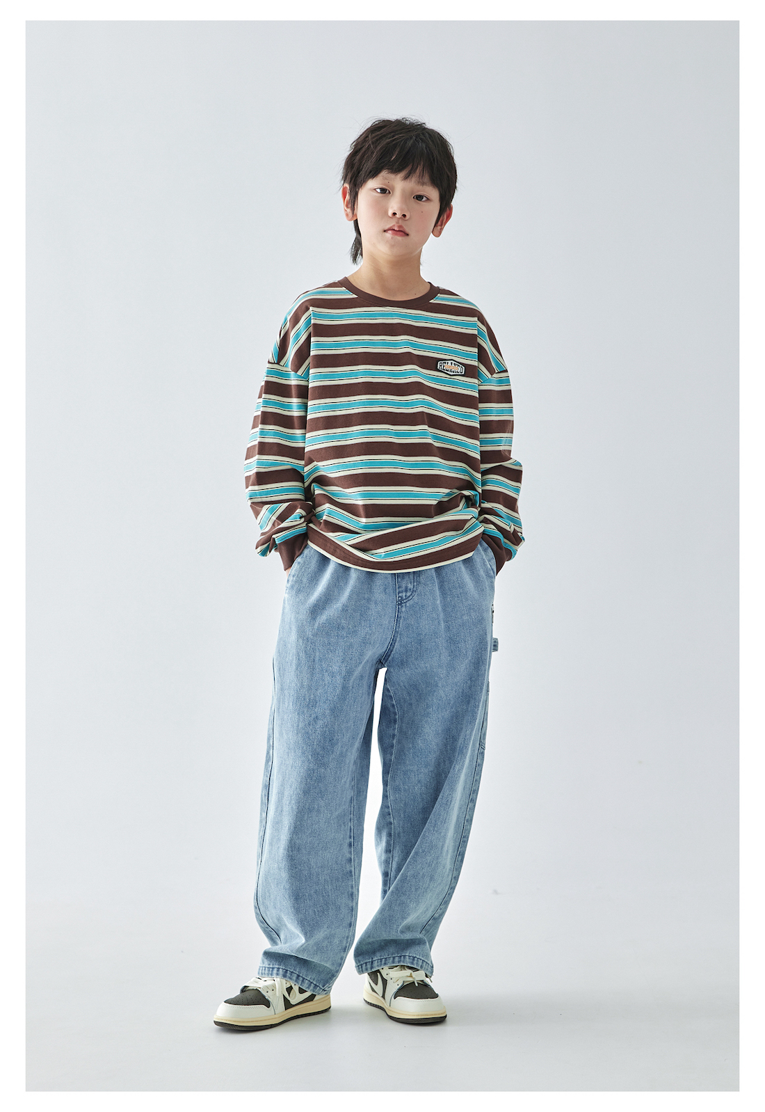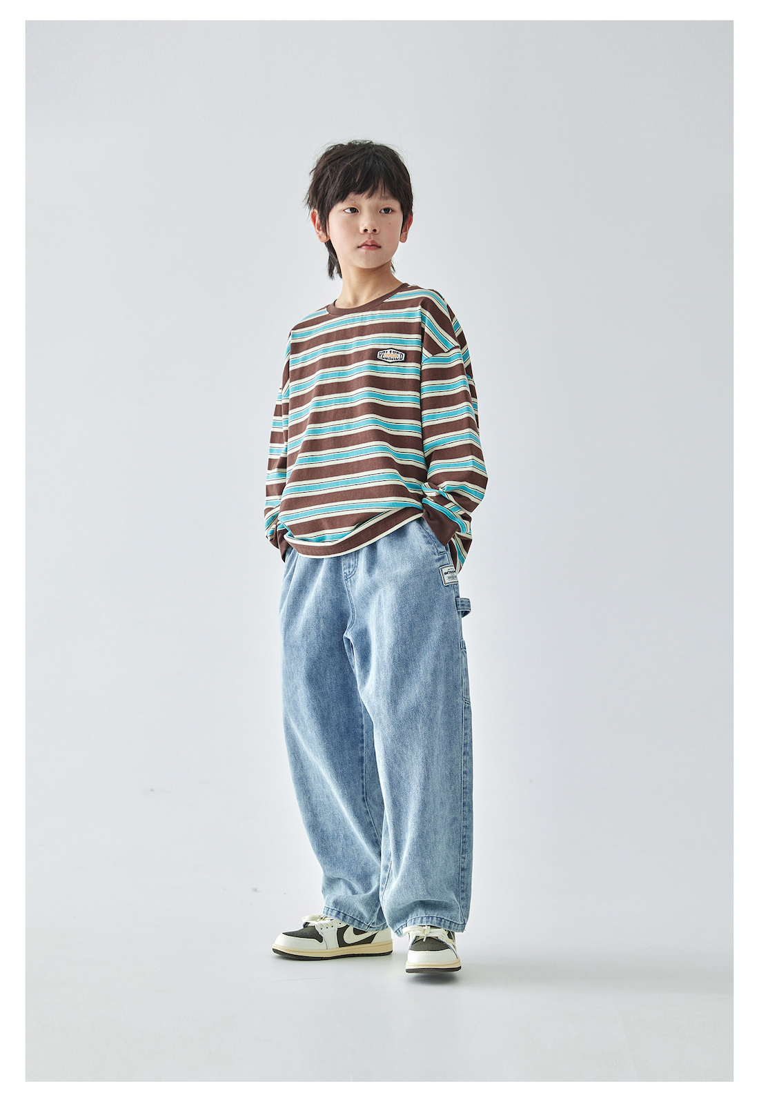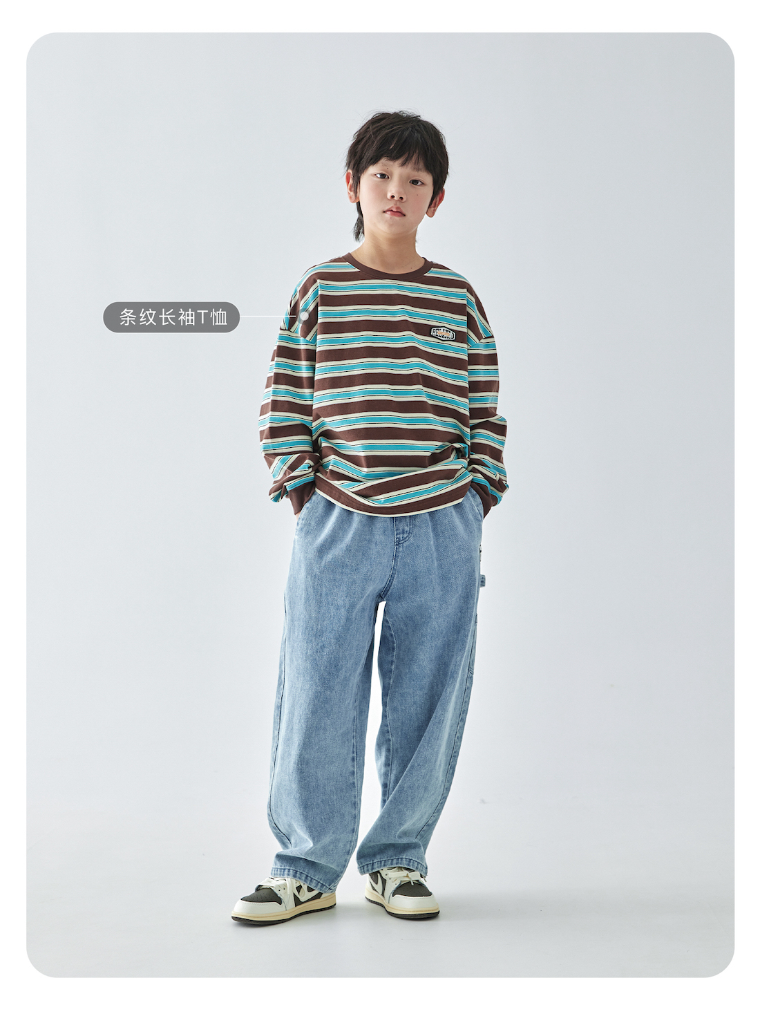 【代发】男款多口袋牛仔裤 蓝汽水多口袋宽松牛仔裤男童复古蓝做旧色调休闲长裤子
