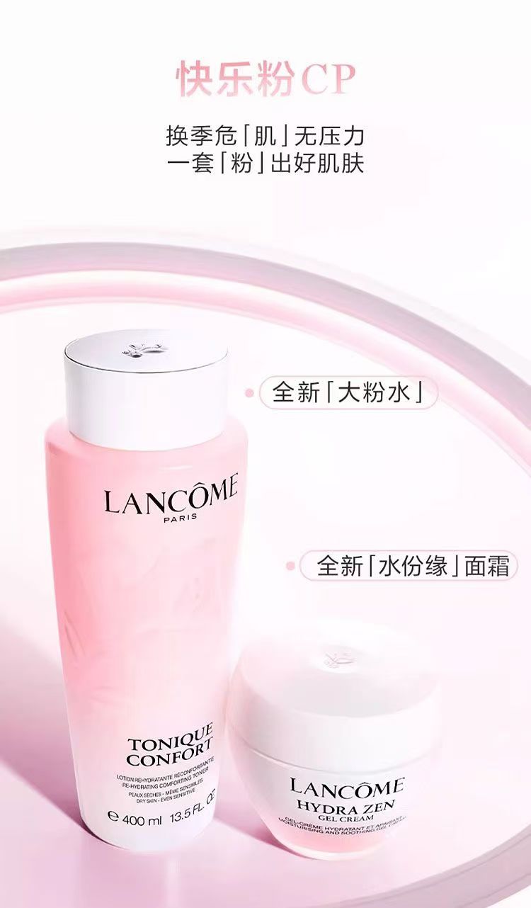 【礼盒礼袋】兰蔻新版修护三件套 新版粉水400ml+新版小黑瓶精华 100ml+小黑瓶发光眼霜 15ml+礼盒礼袋