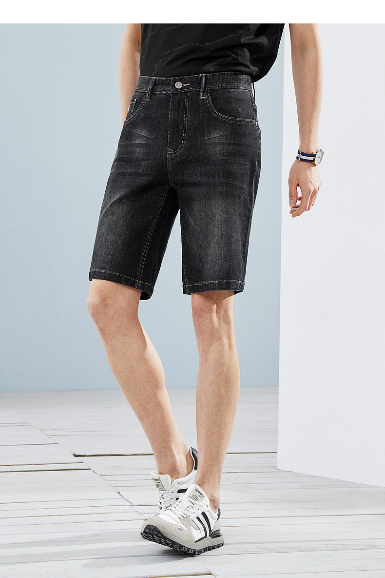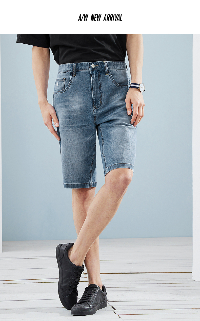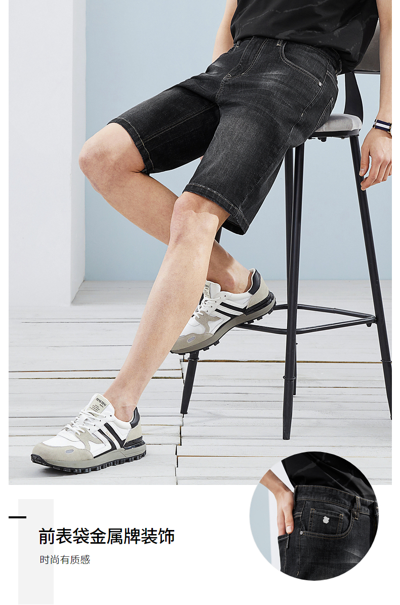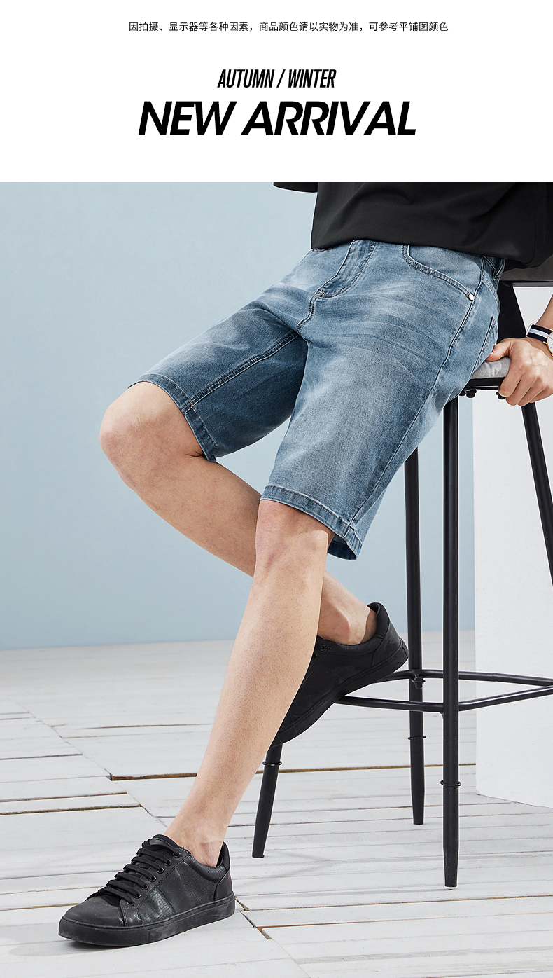 【特价冰藻泥】柒牌牛仔短裤男夏季凉感时尚休闲猫须水洗直筒男裤 124H71050