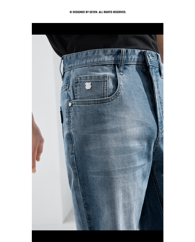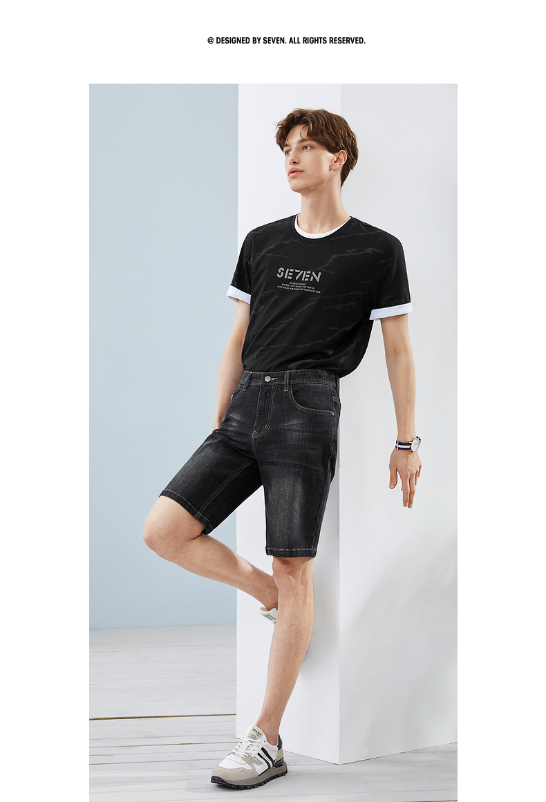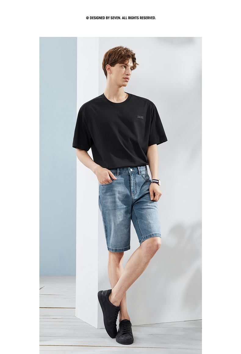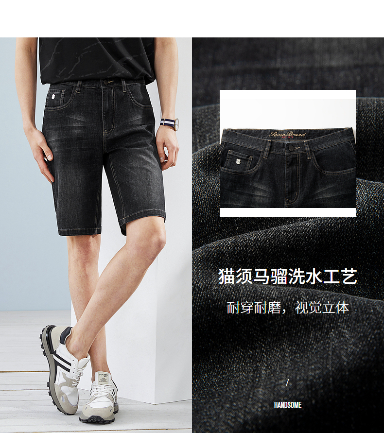 【特价冰藻泥】柒牌牛仔短裤男夏季凉感时尚休闲猫须水洗直筒男裤 124H71050