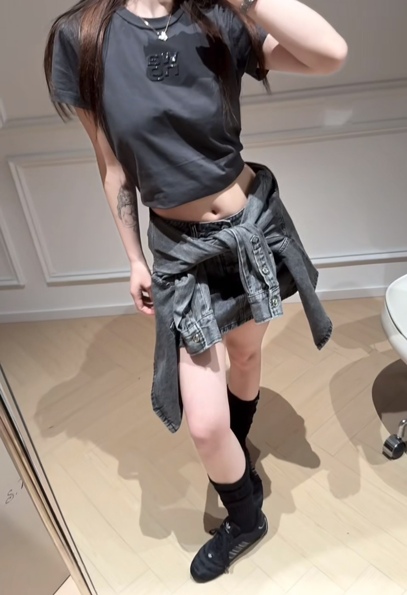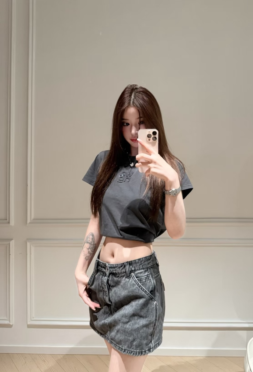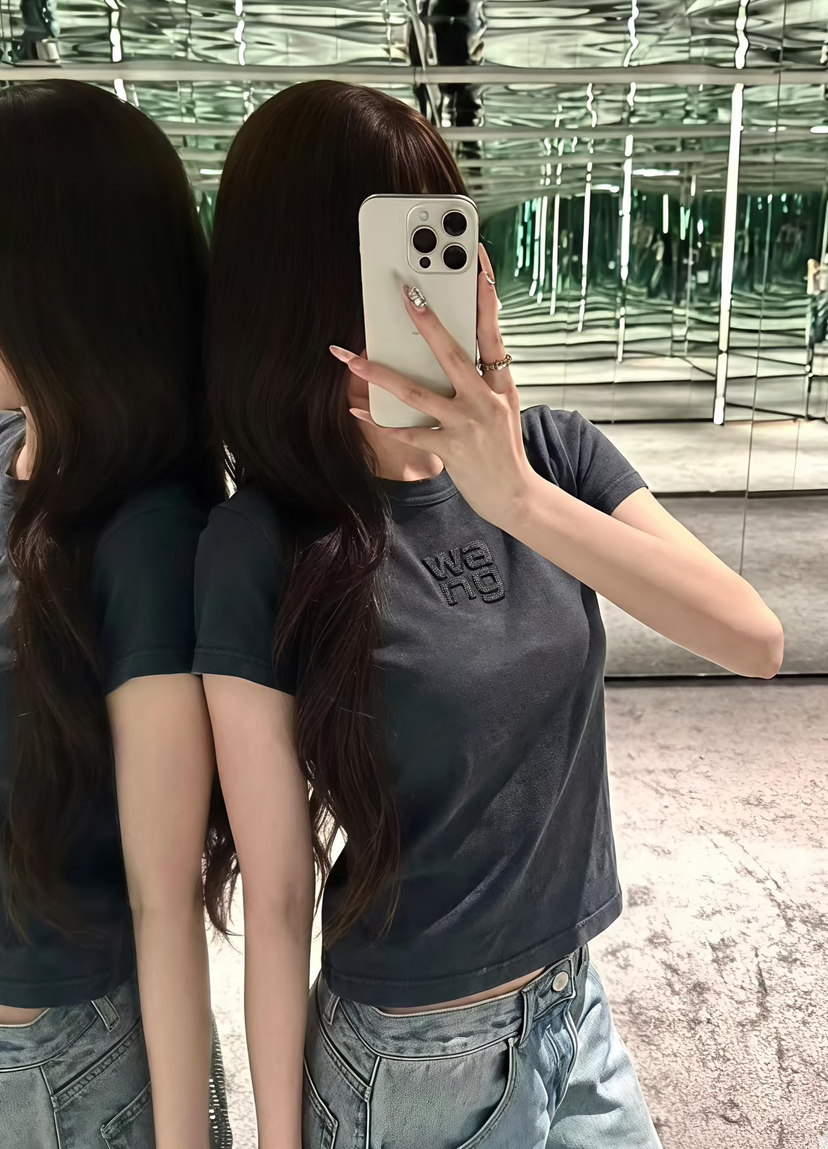 41-4 巨巨巨时髦 纯圆正 AW基础 暗黑做旧水洗 字母烫钻 时髦短袖T恤