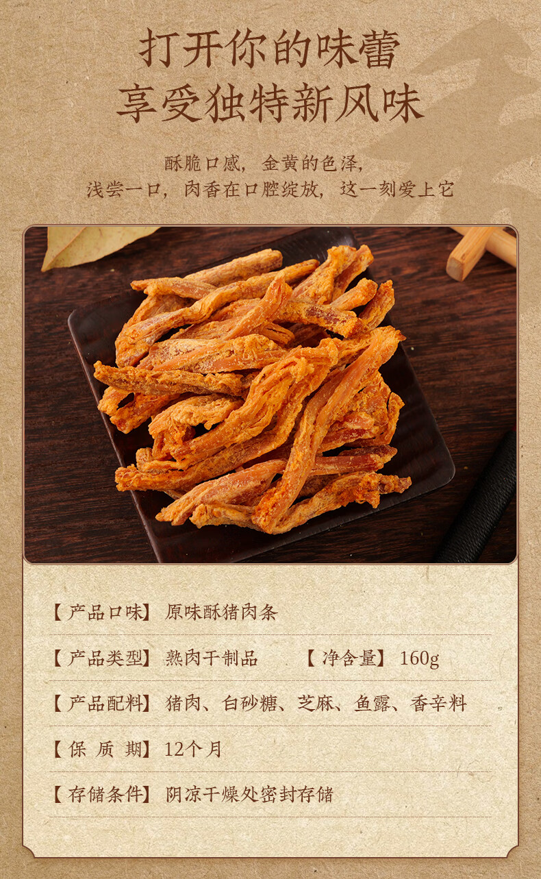 富崎乐原味酥猪肉条160g/152589 精挑细选瘦肉口感酥脆