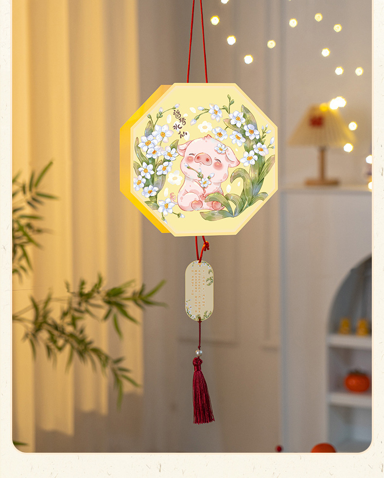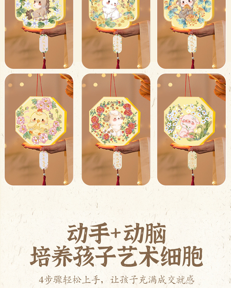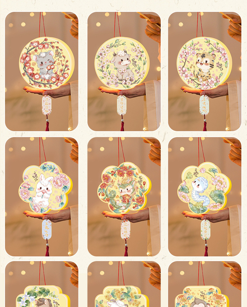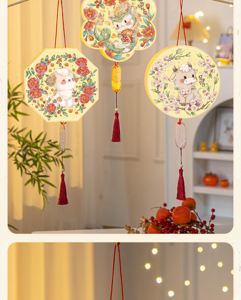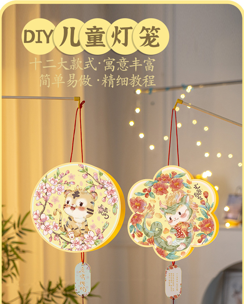 【中秋灯笼手工diy材料包】十二月令生肖龙年花灯 儿童幼儿园挂饰 卡通生肖图案