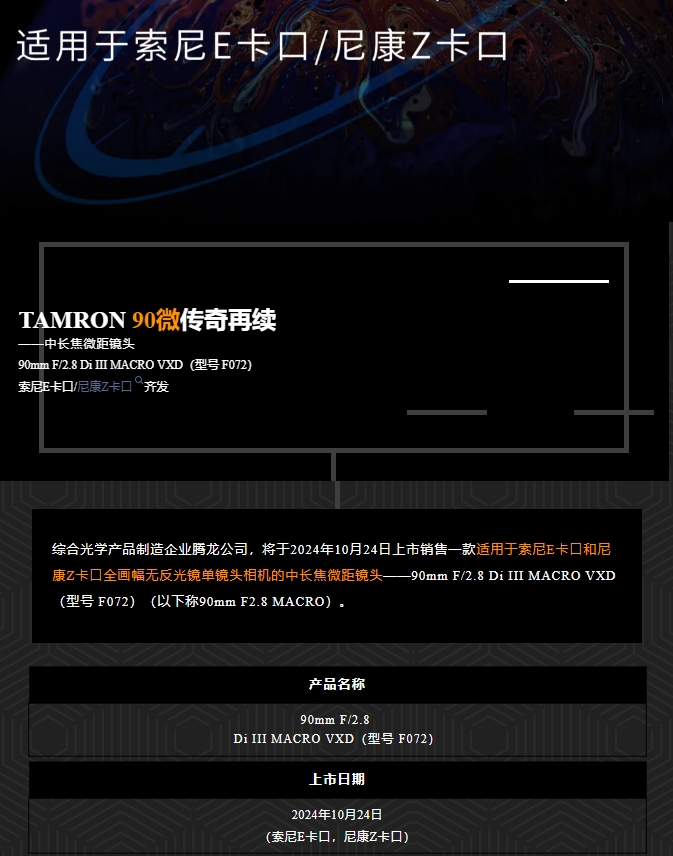 全新国行丨腾龙90mm F2.8 Di III MACRO VXD F072全画幅中长焦微距镜头索尼E/尼康Z