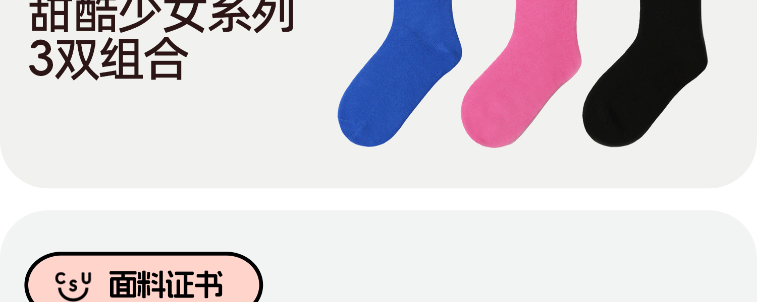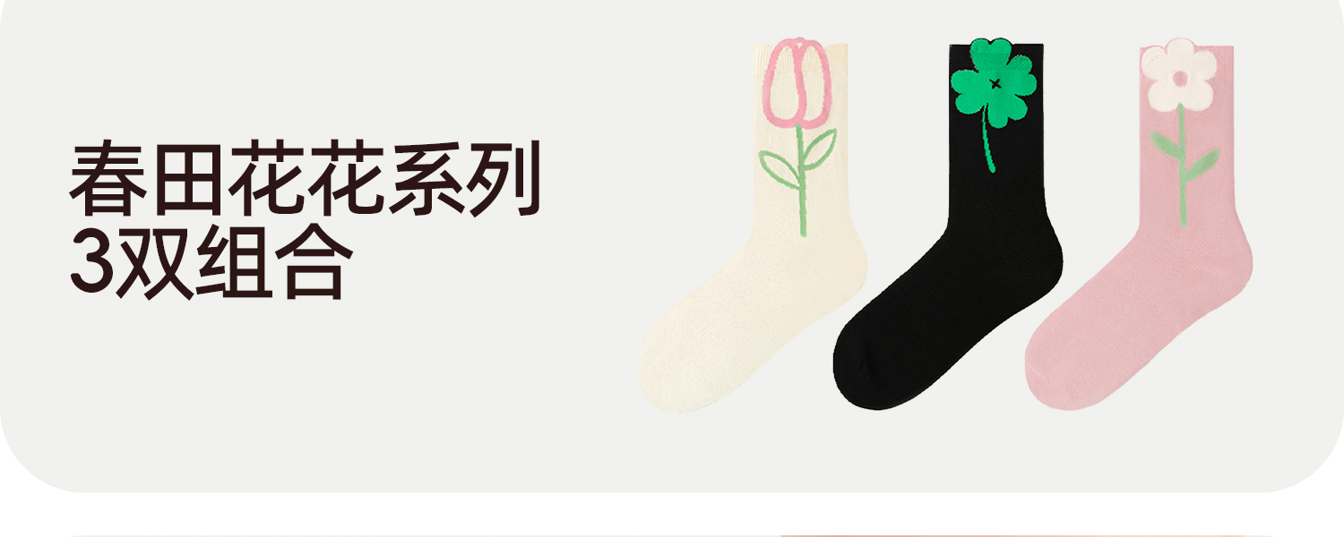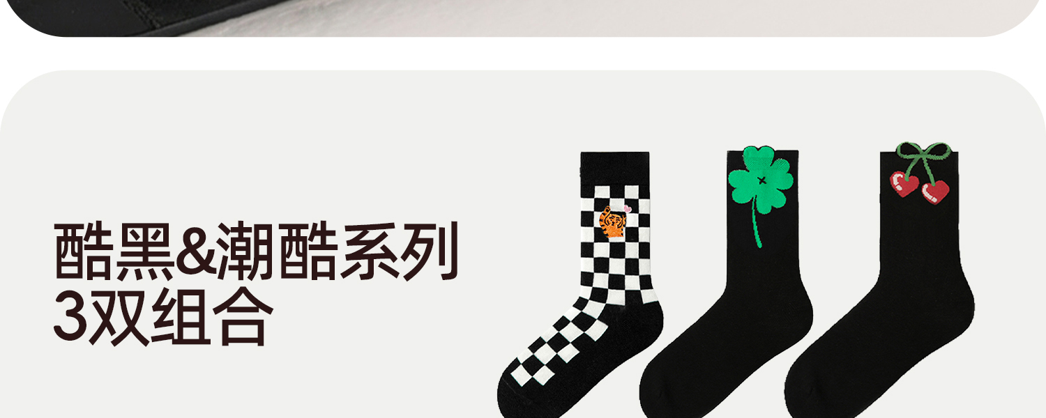 3双49元好奇蜜斯中筒袜子女棉秋冬2026马年可爱新年外穿潮透气厚-3双袜子组合