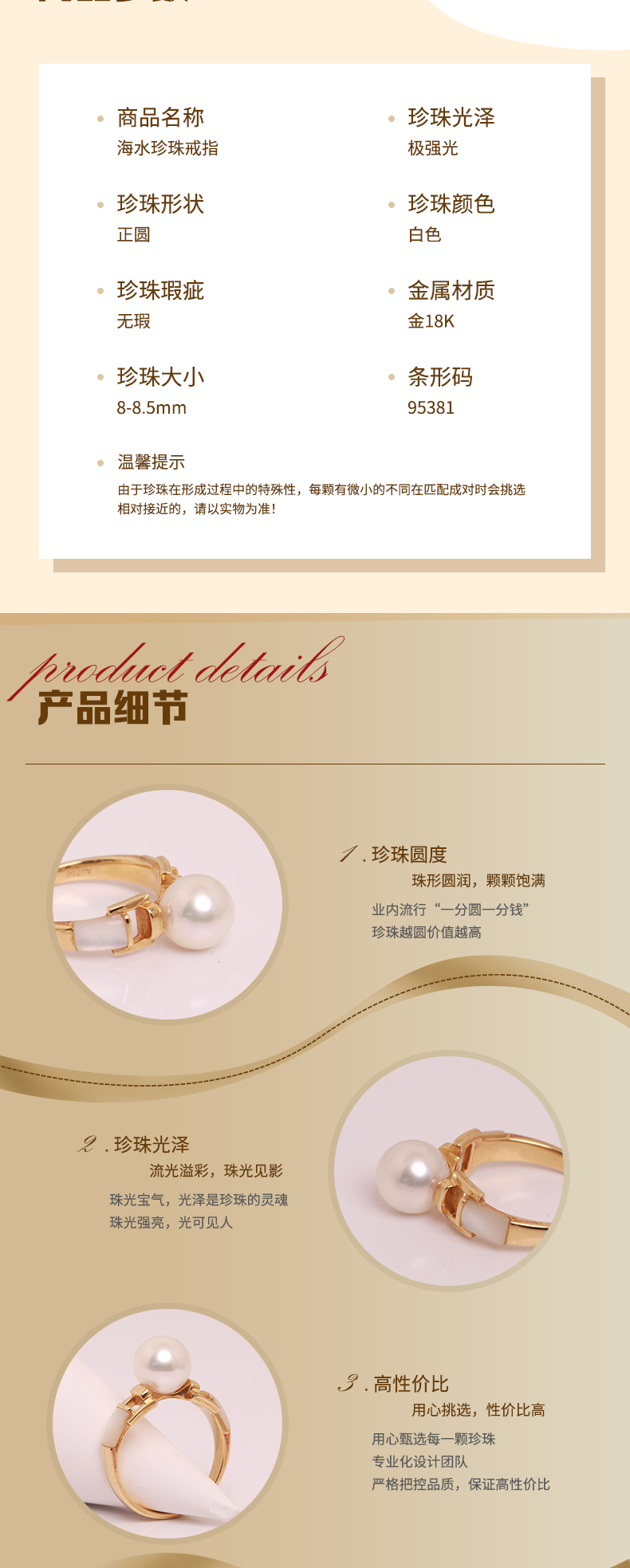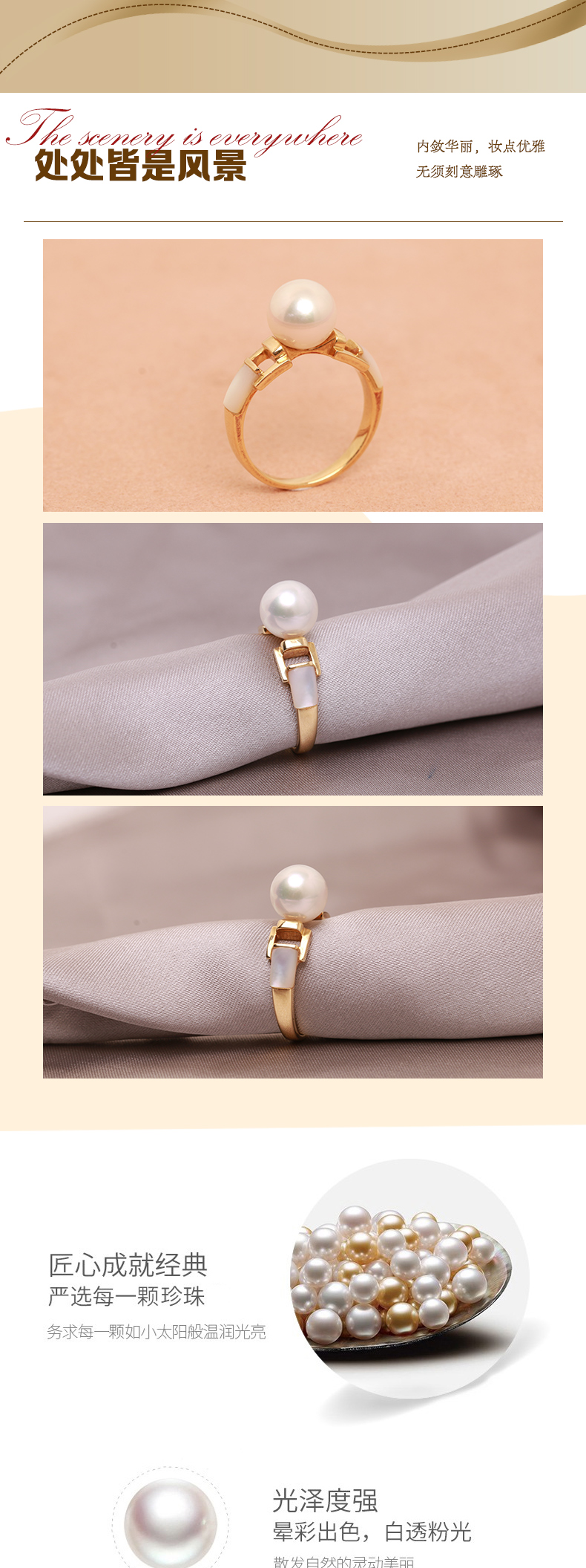 美裕 金18K海水珍珠戒指 8-8.5mm白 95381