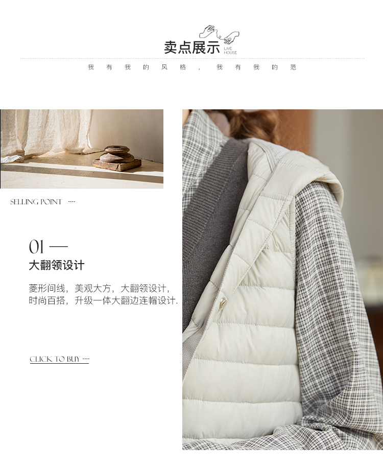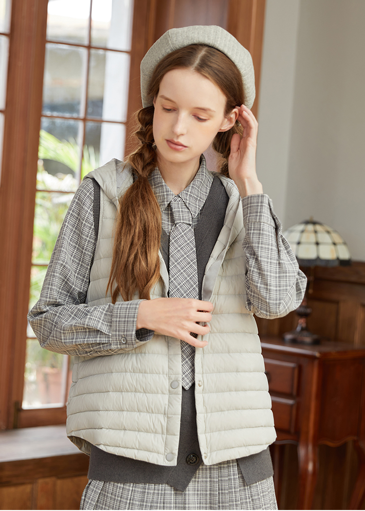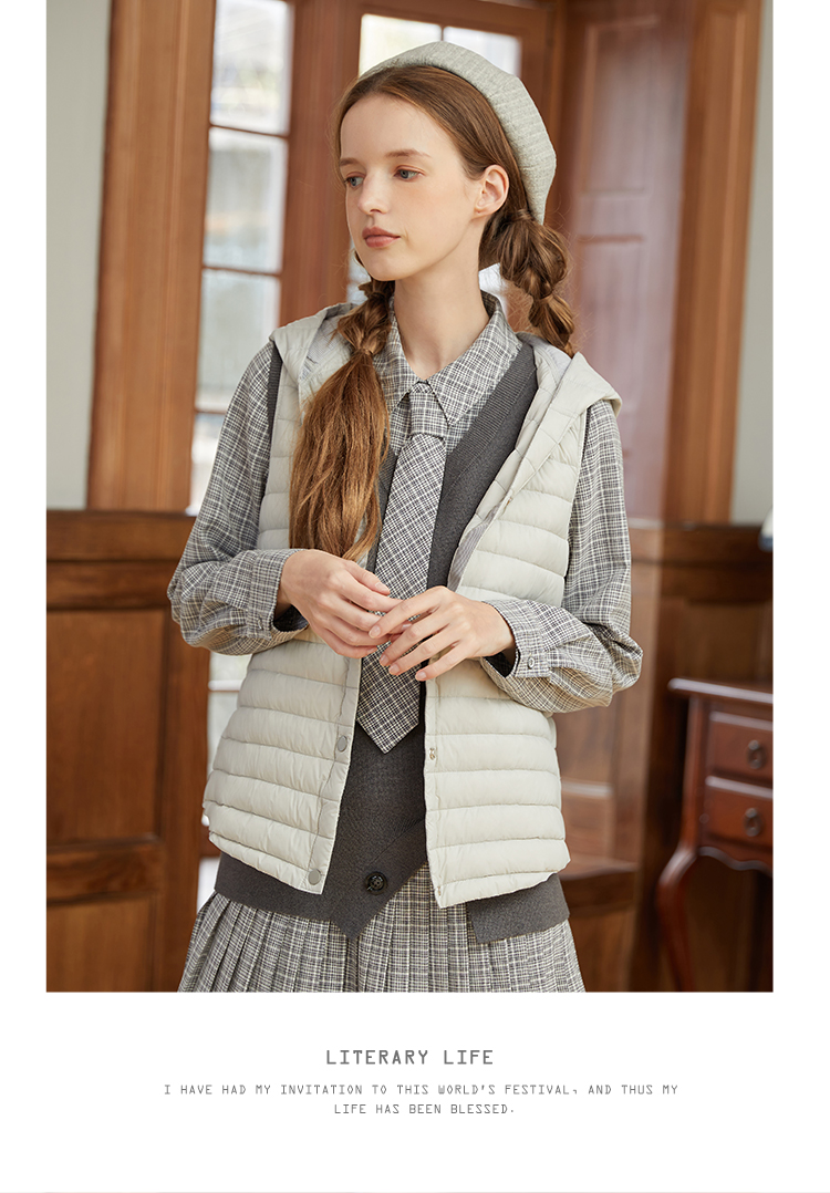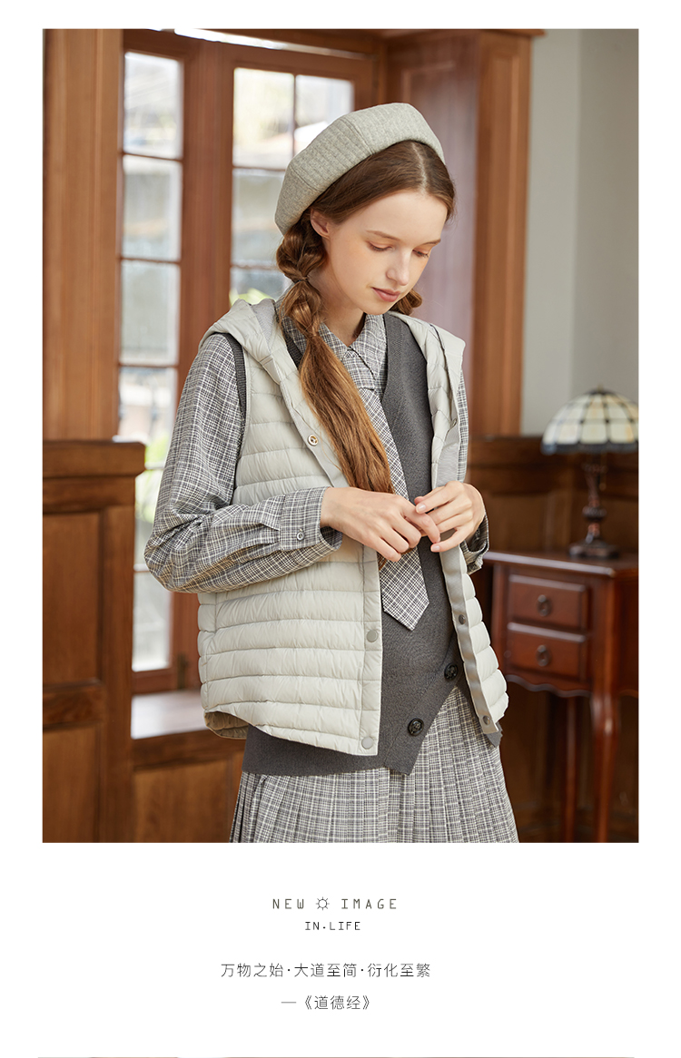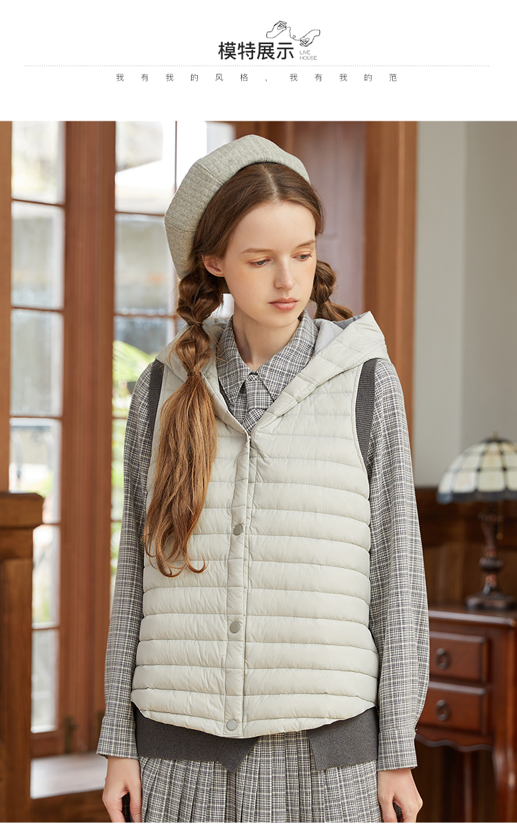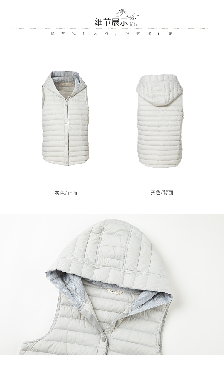 famecoco范可儿连帽羽绒马甲女秋冬轻薄宽松外穿坎肩外套F228CS001