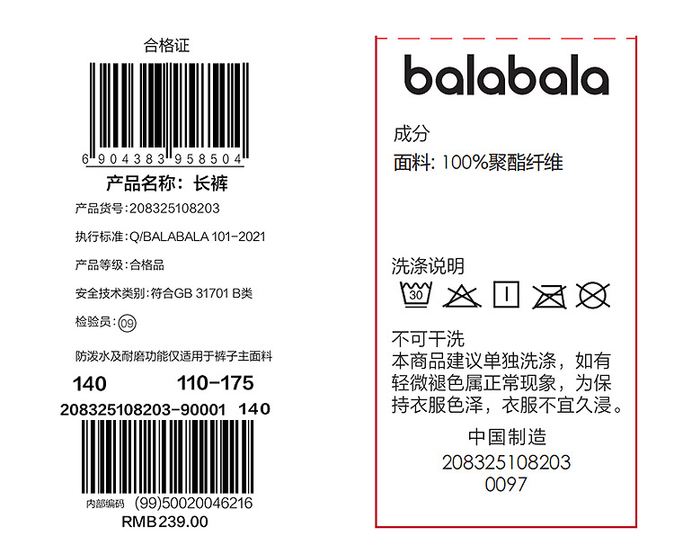 巴拉巴拉balaOne童装男童女童长裤儿童裤子2025新秋防泼水束脚裤