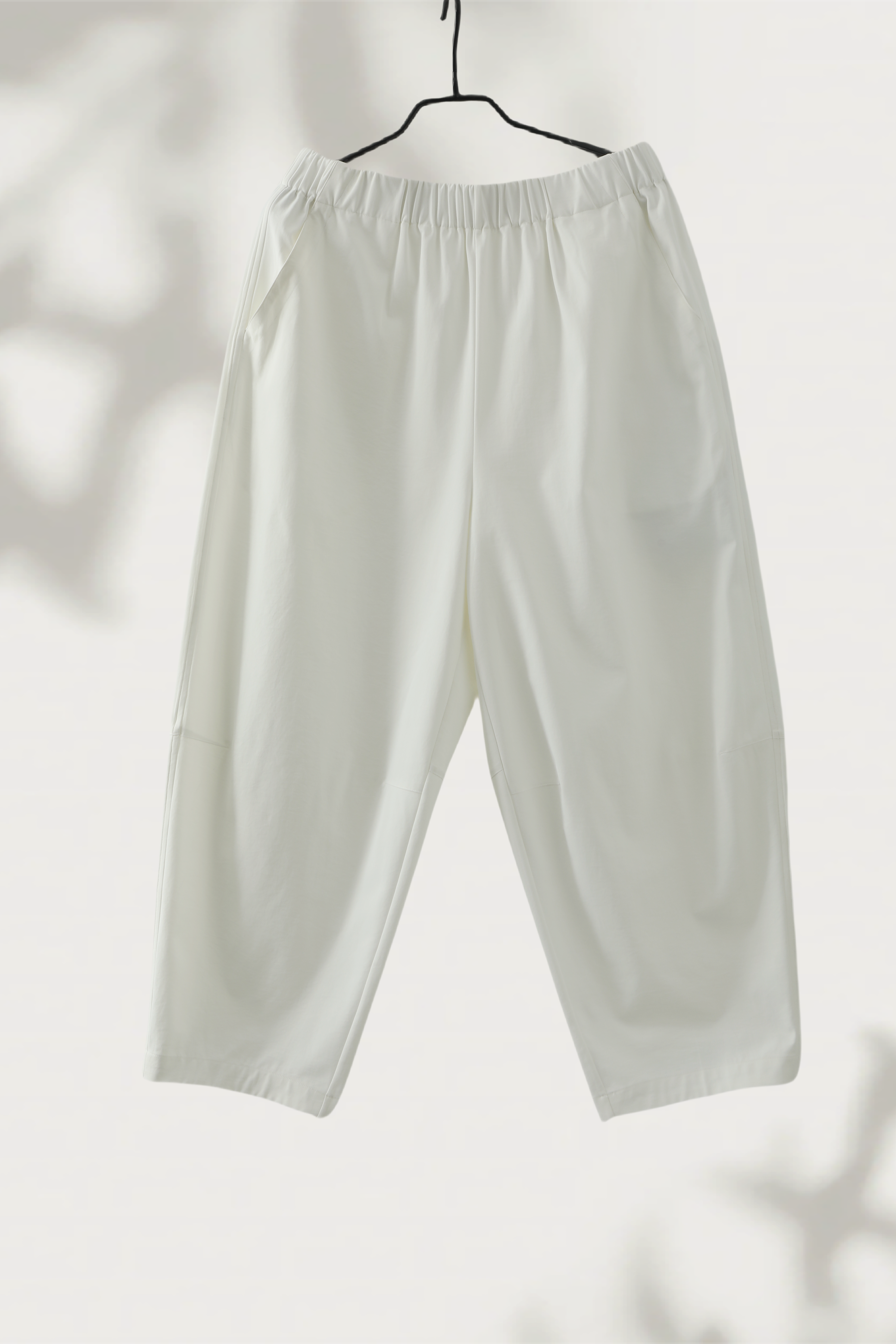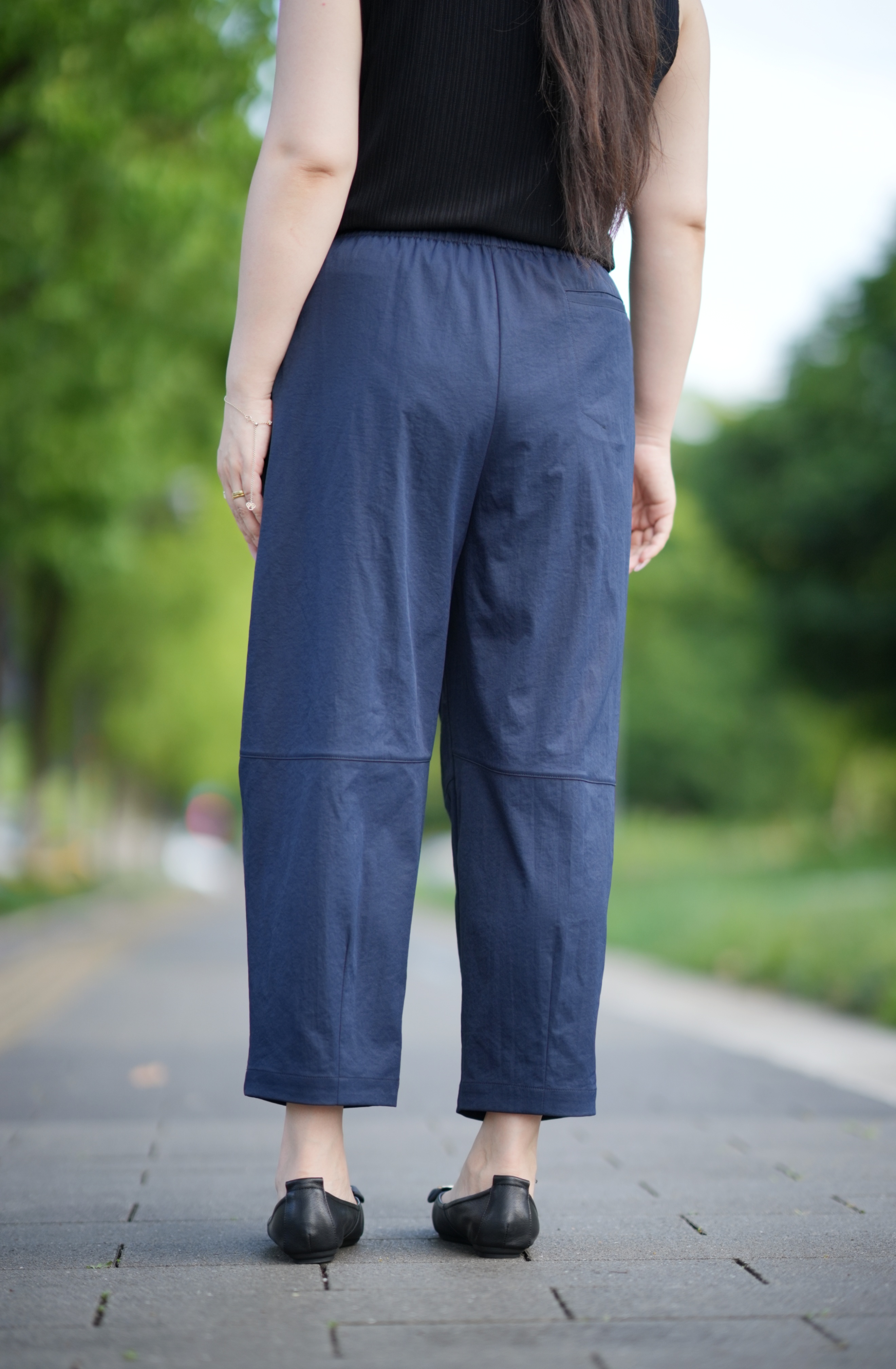这款裤子是萝卜裤的版型,裤腿的空间很大,可以把腿部的肉肉都包容起来。
