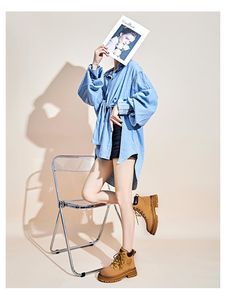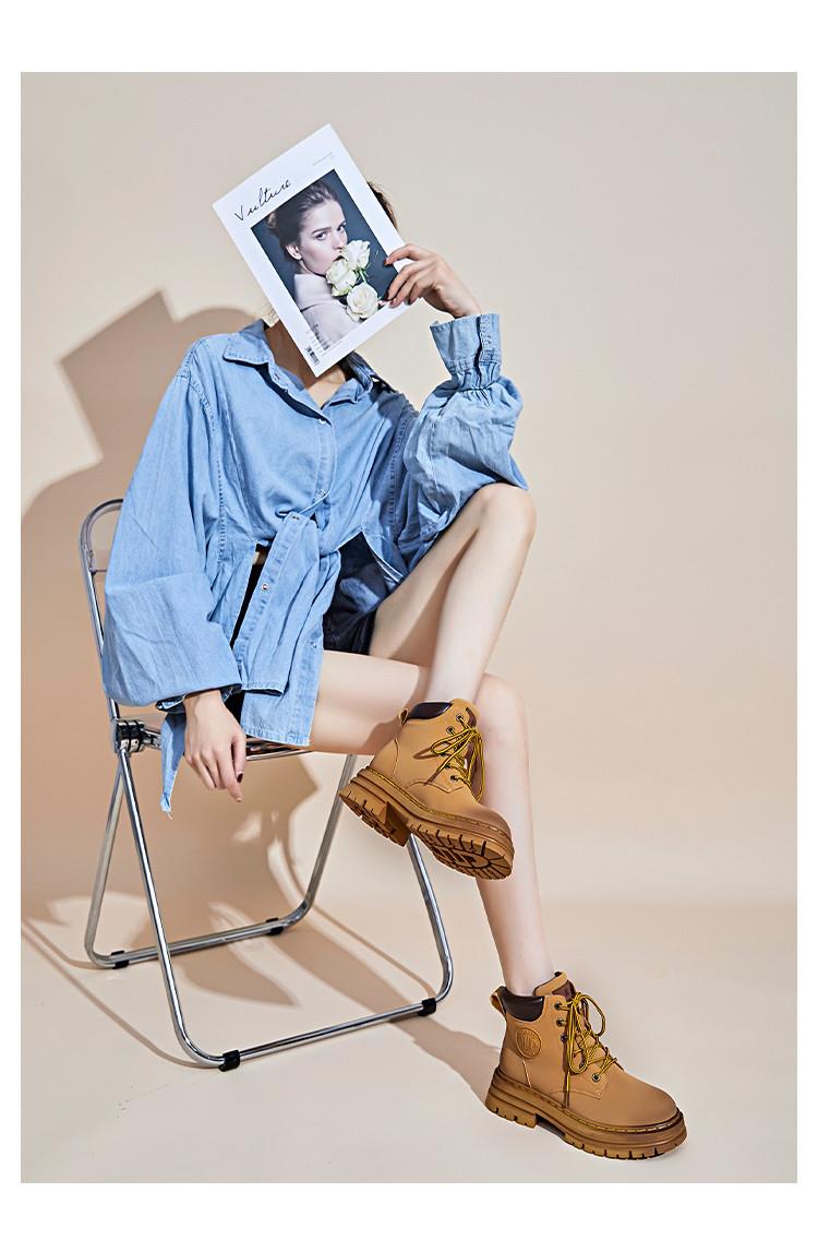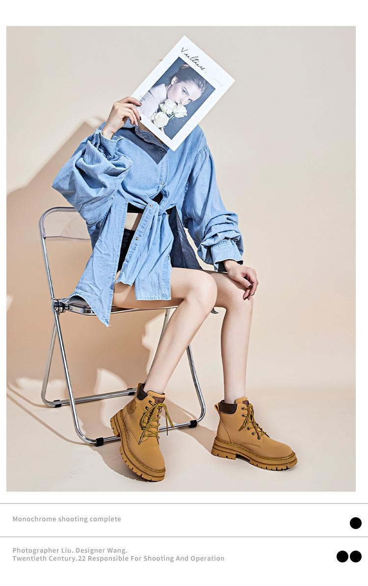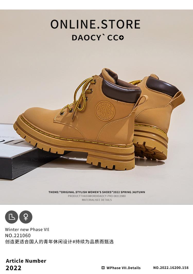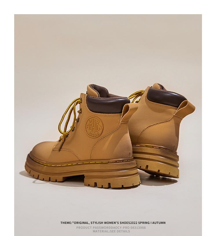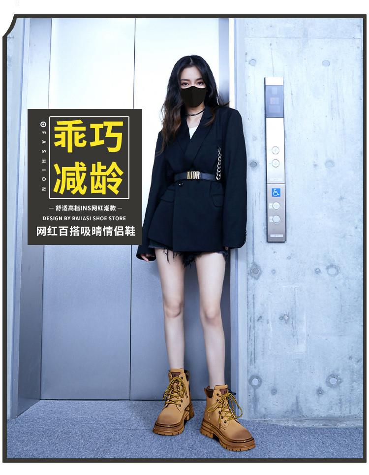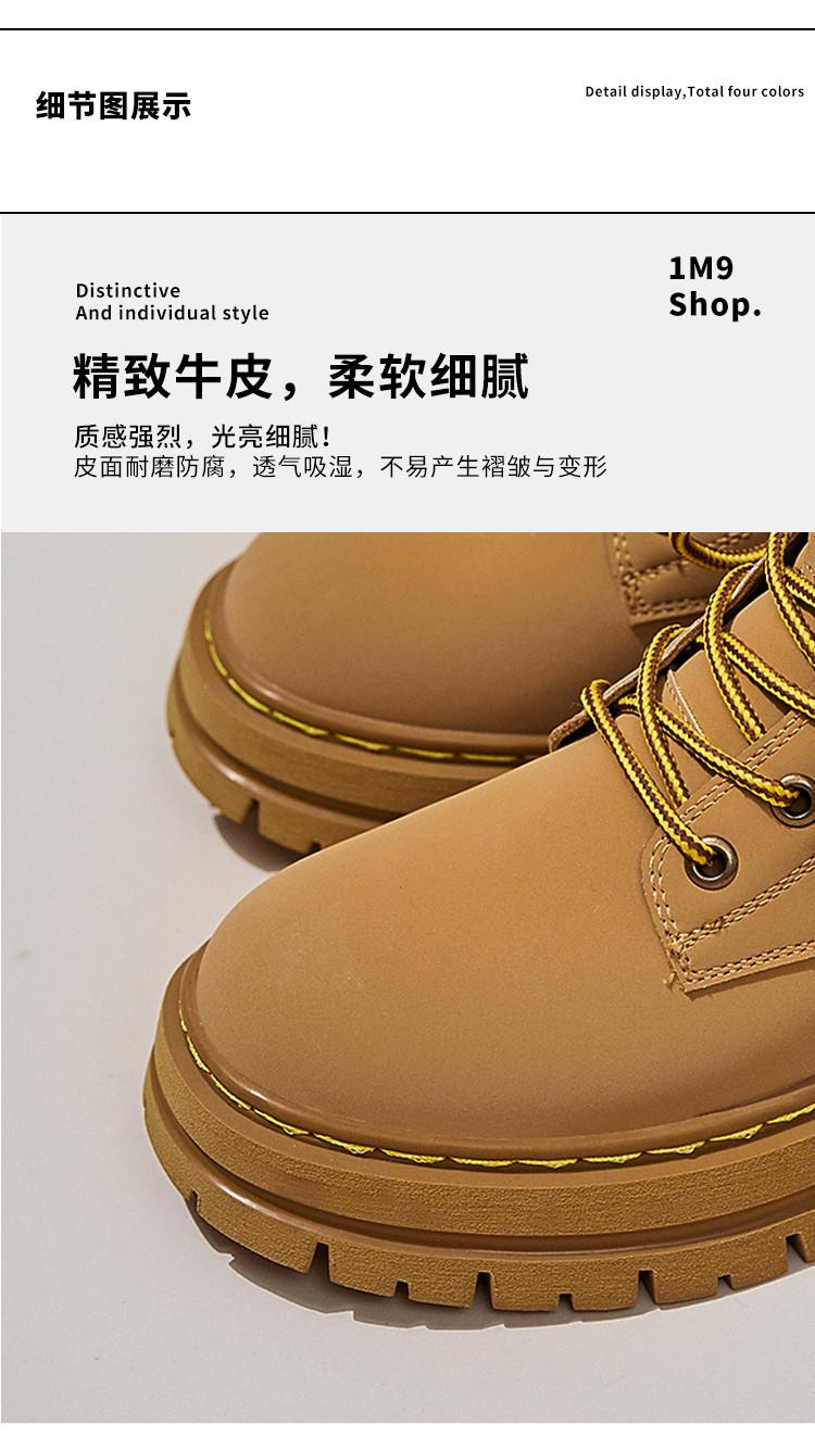 情侣款真皮大黄靴2025新款秋冬季女鞋英伦风短靴女厚底马丁靴鞋子