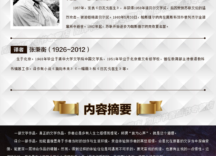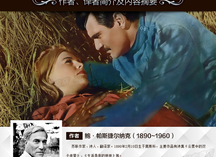 苏联作家,诗人,翻译家。生于画家家庭。著有多种诗集及翻译作品。代表作《日瓦戈医生》获1958年度诺贝尔文学奖。