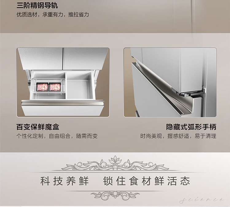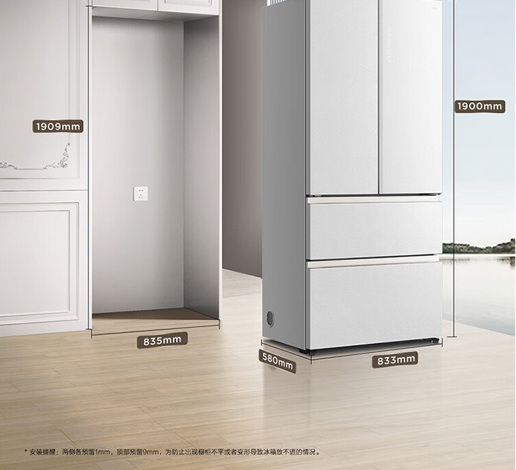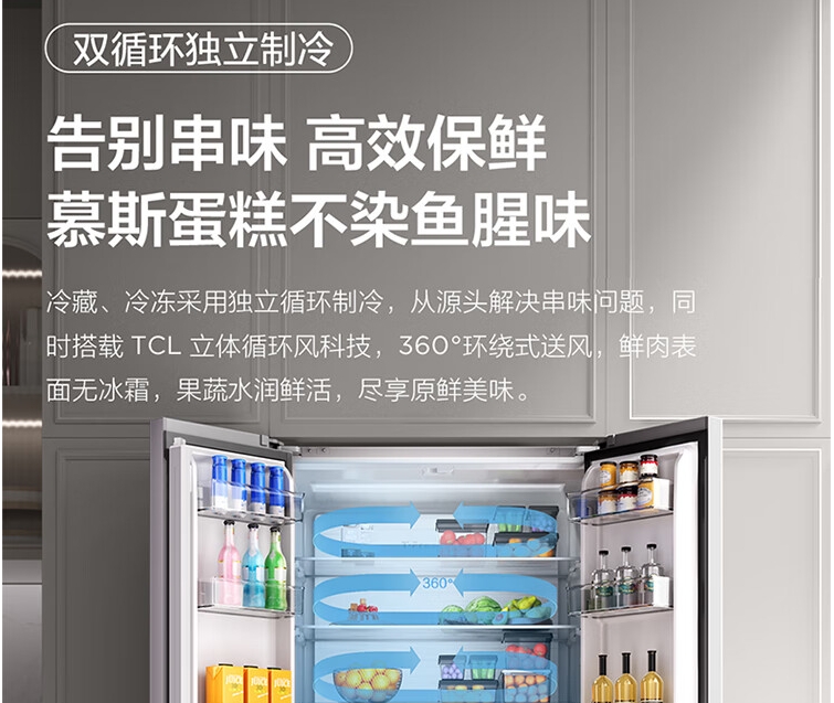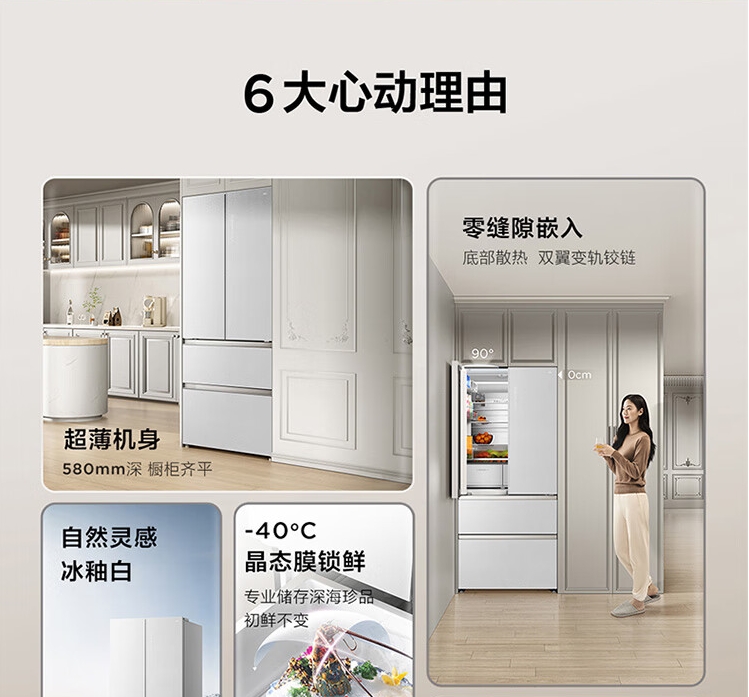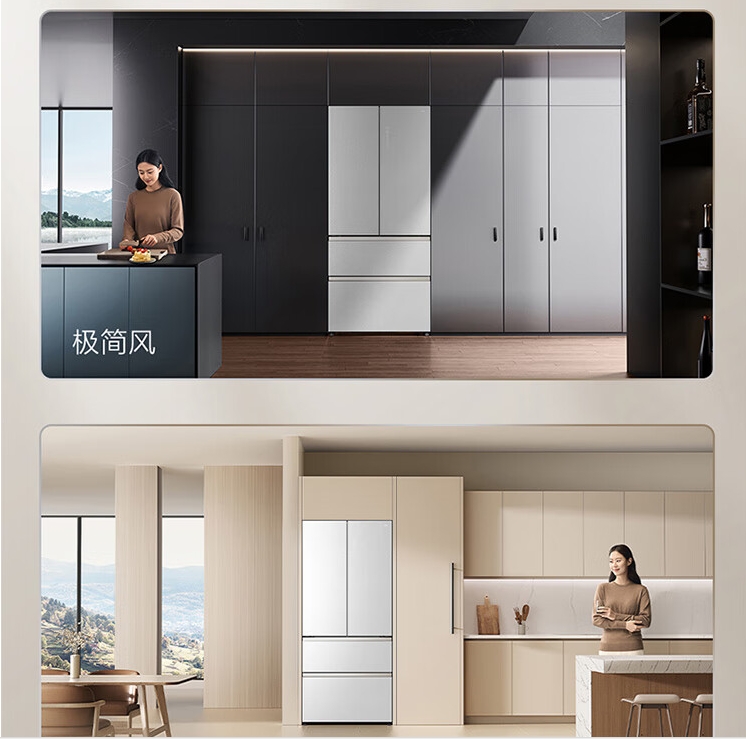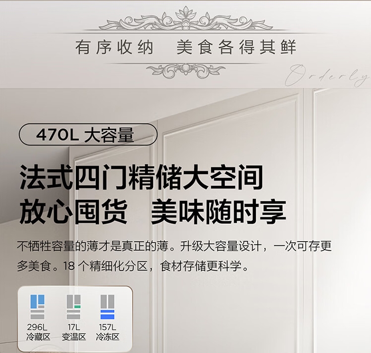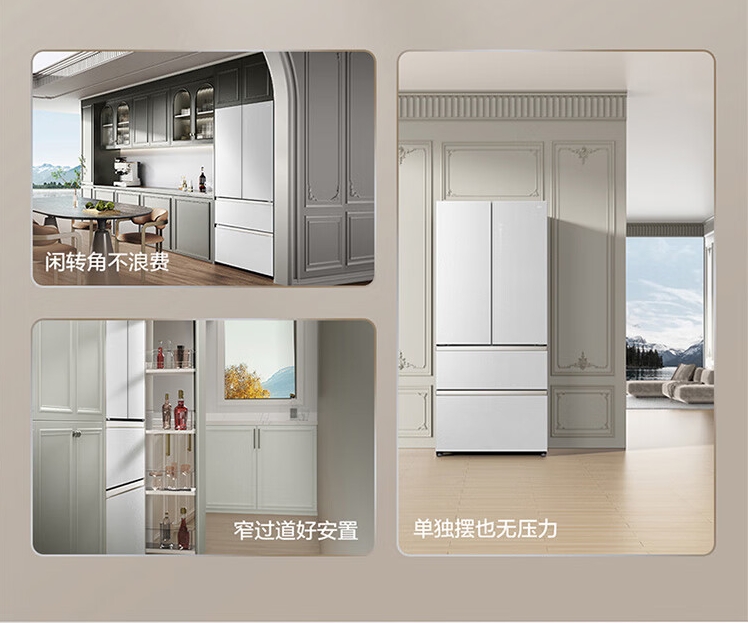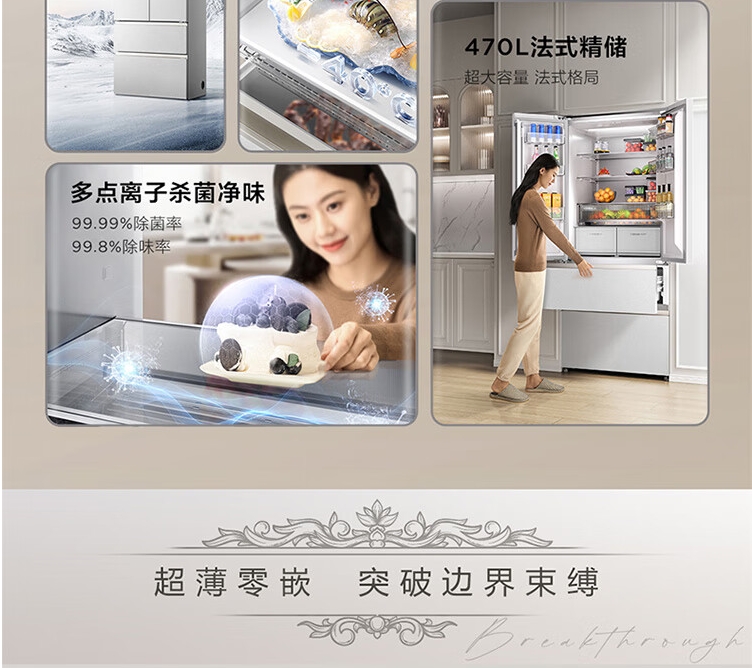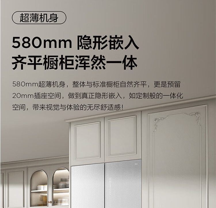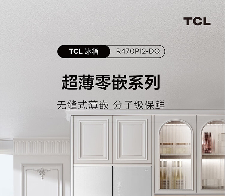 TCL470(912695)升法式四开门多门58cm超薄零嵌入式白色玻璃面板风冷家用电冰箱杀菌除味一级能效 R470P12-DQ