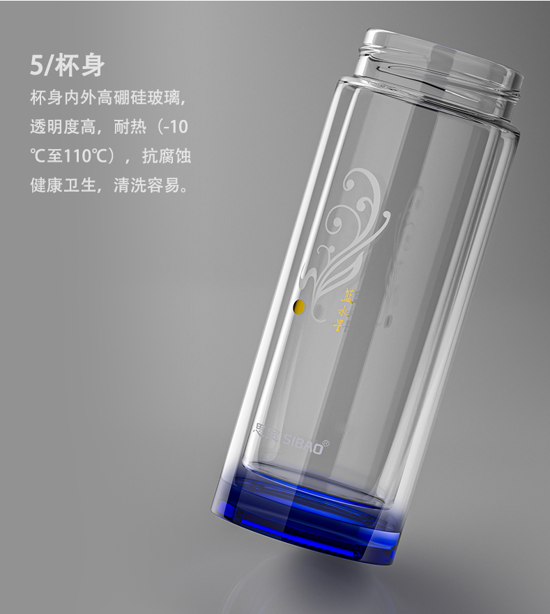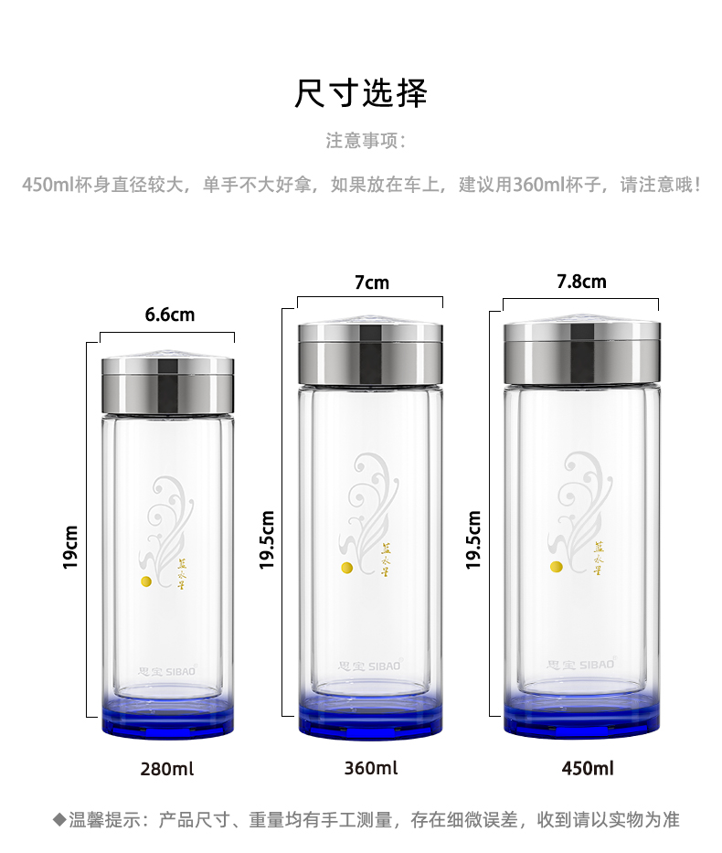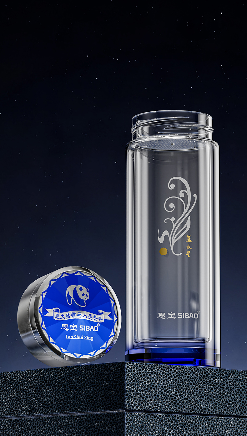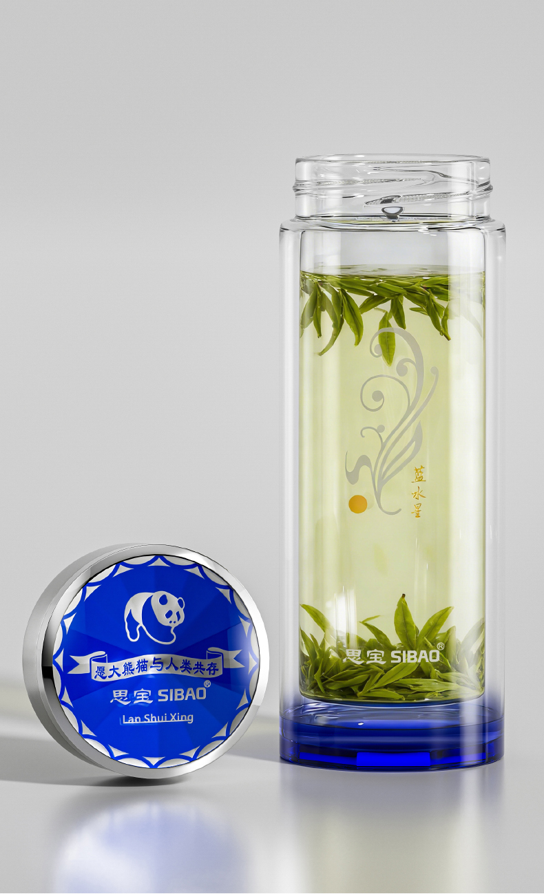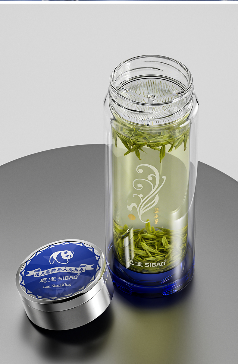 思宝旗舰店蓝水星新品双层玻璃杯便携车载内置茶隔礼盒装男女通用