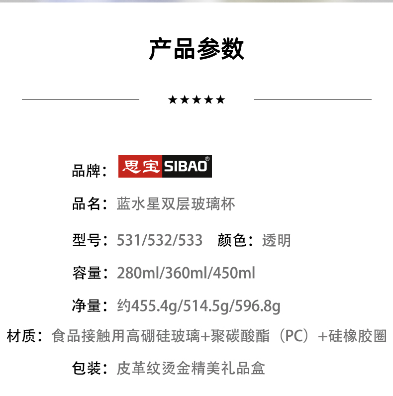 思宝官方旗舰店新品高山流水5678号双层玻璃杯男女通用茶杯礼盒装