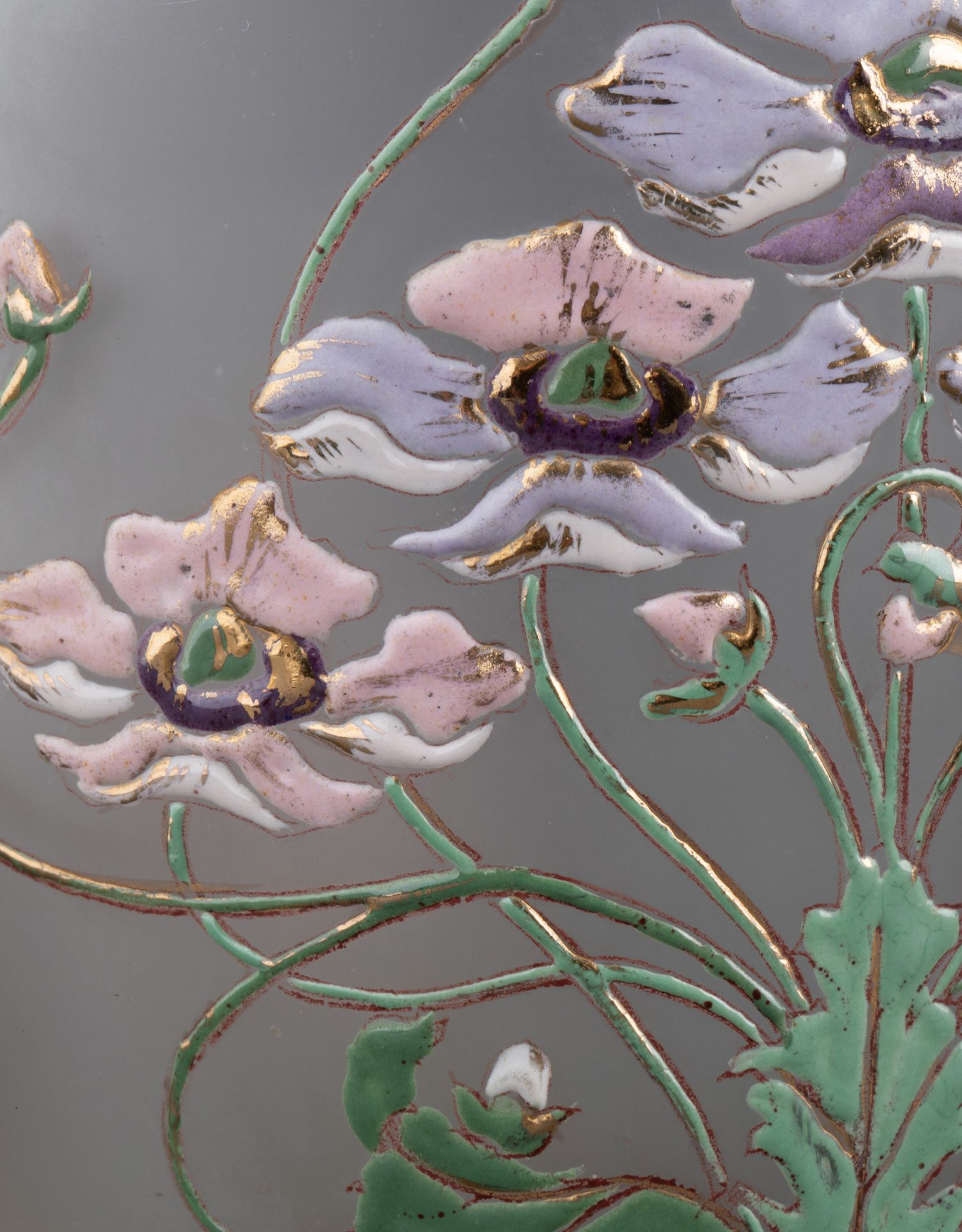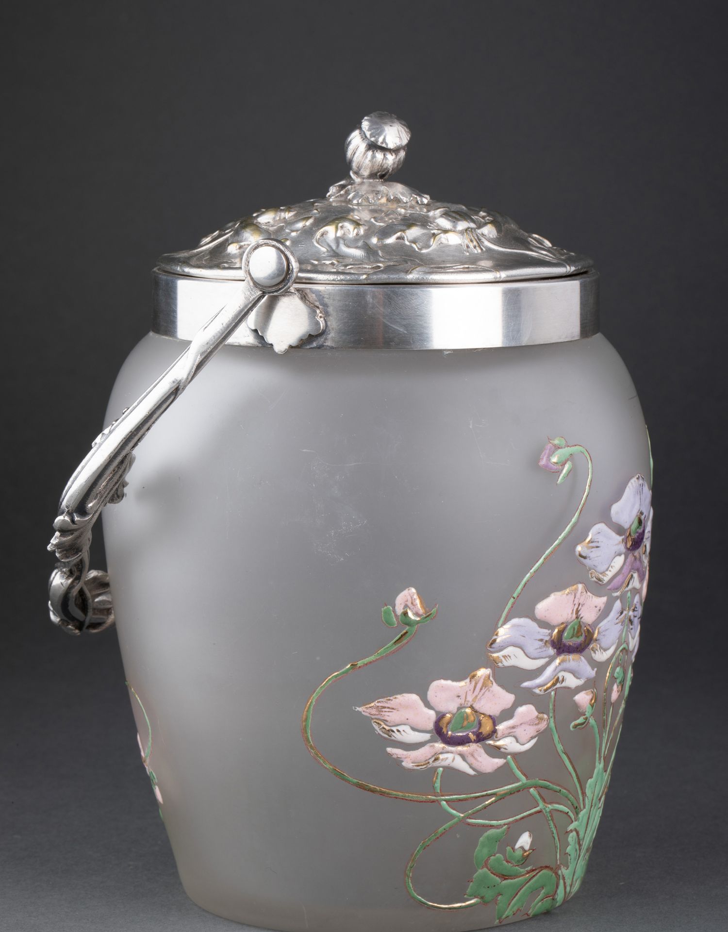 独角鹿西洋古董Victor SAGLIER工坊花卉铜镀银雕饰水晶罐饼干桶