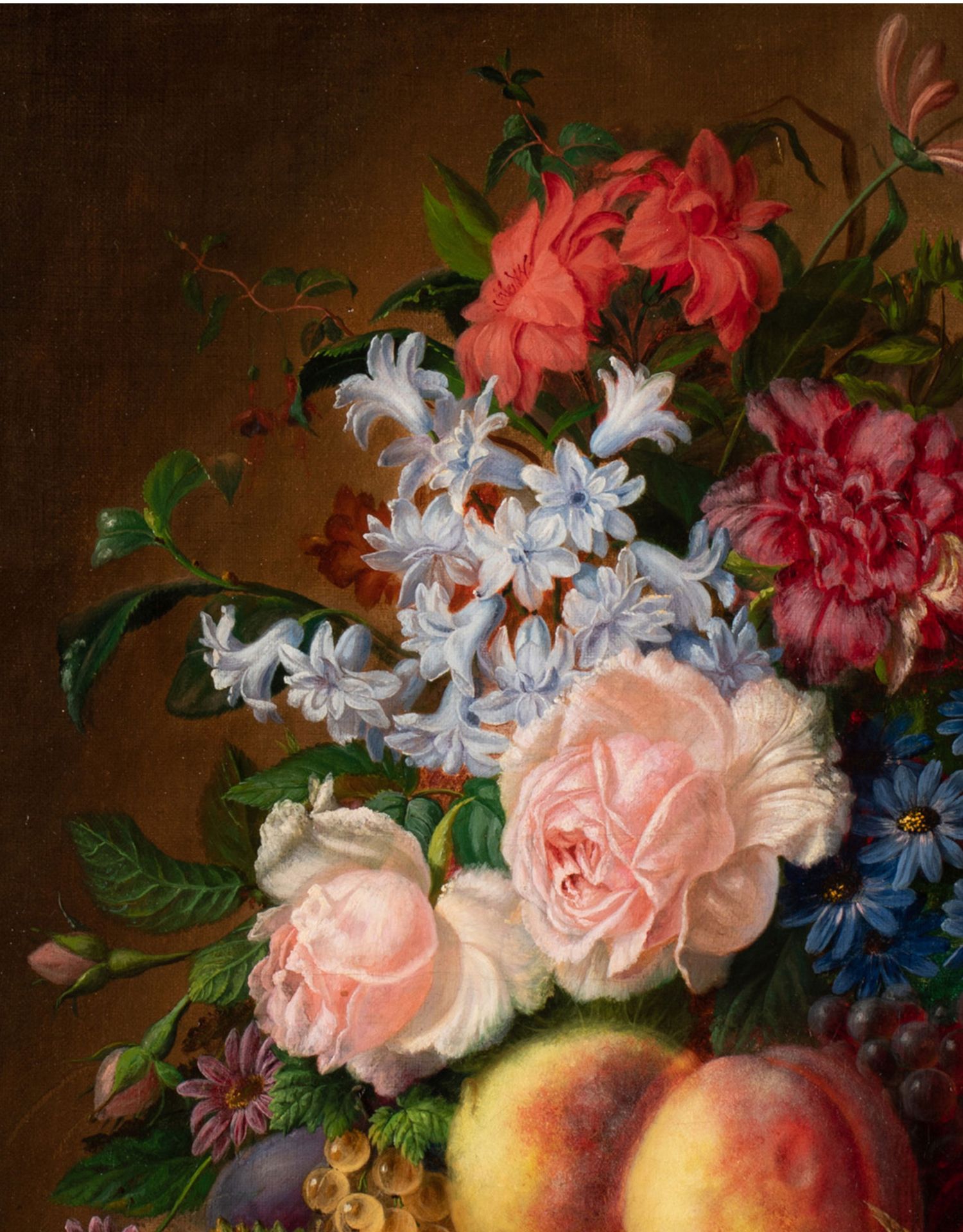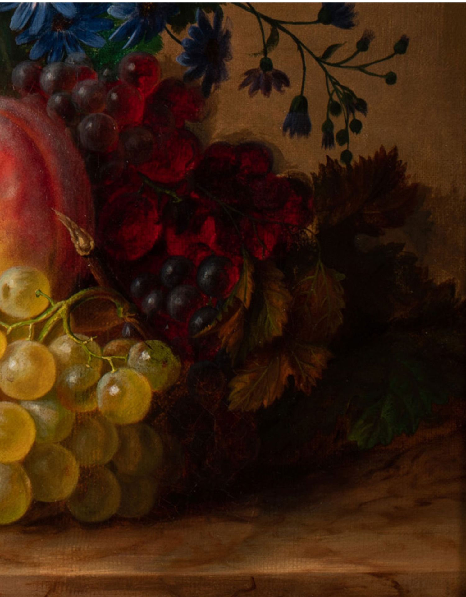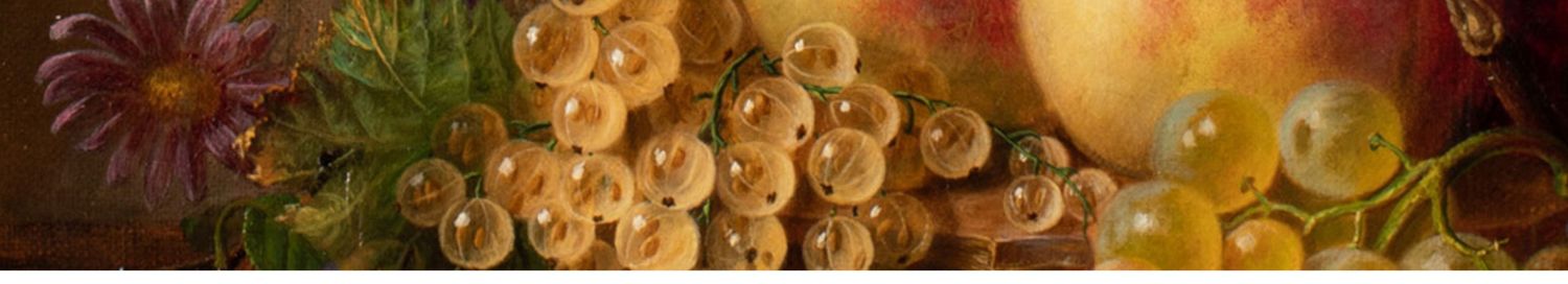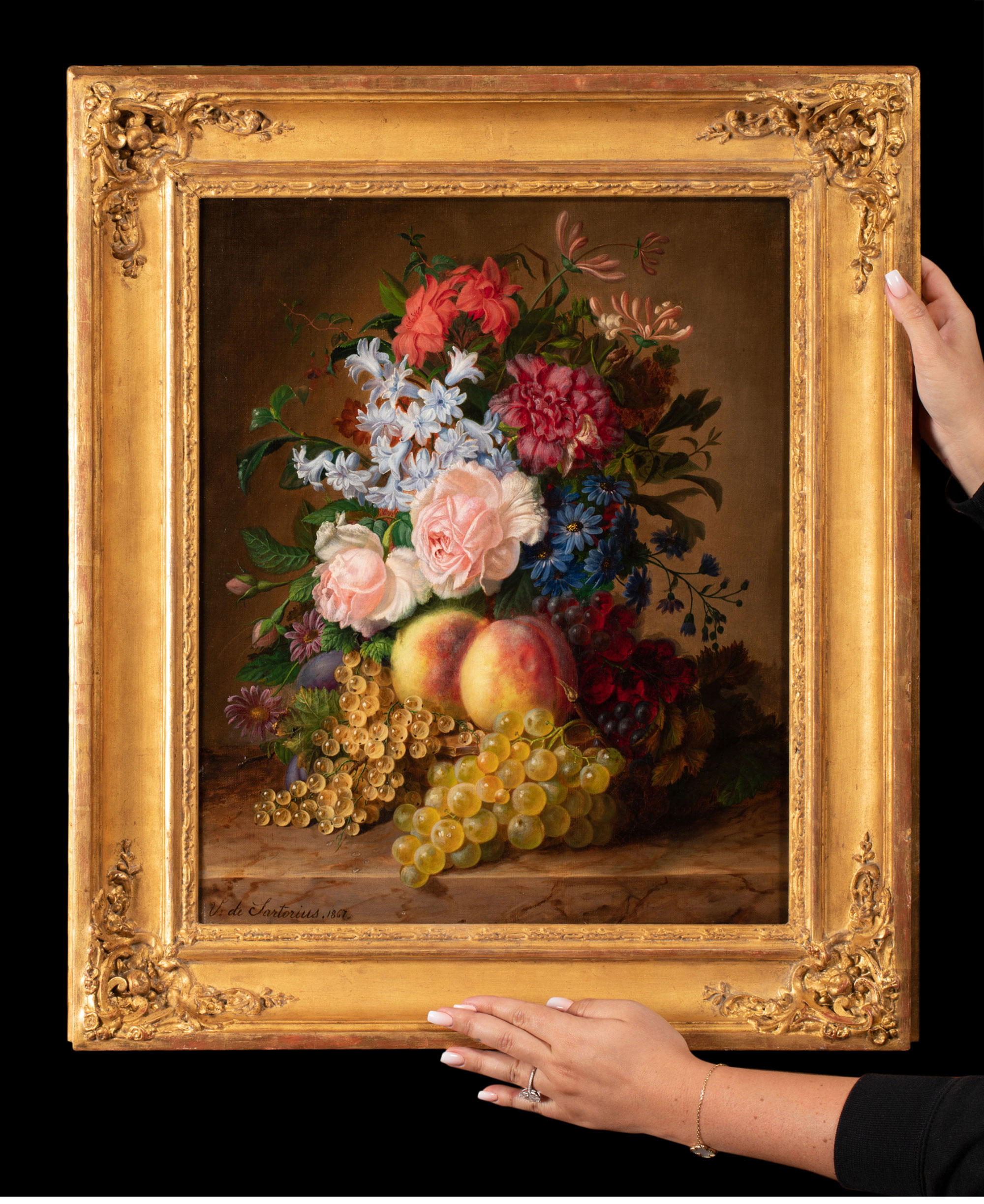 独角鹿西洋古董⽐利时画家V. de Sartorius签名布⾯油画花果静物