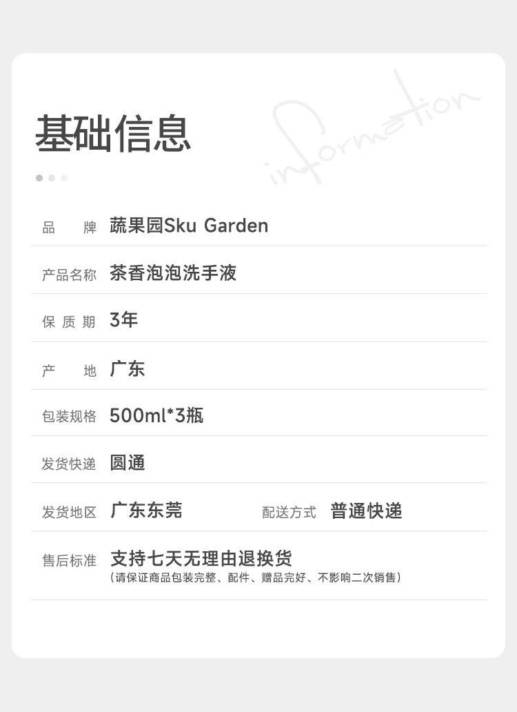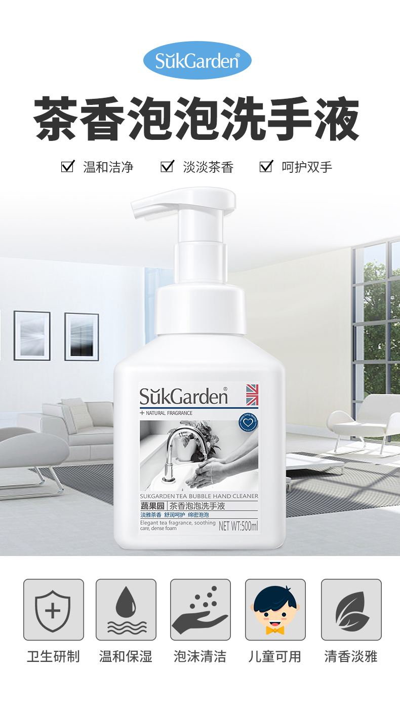 【蔬果园茶香泡泡洗手液】 泡泡按压泵设计 按压出来的泡沫洁白绵密 山茶味清香扑鼻 易冲洗AA