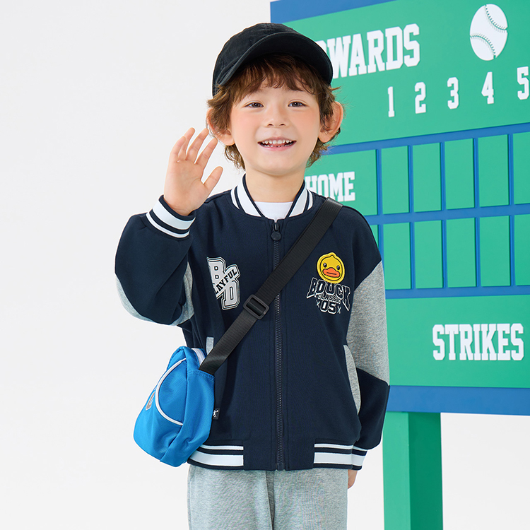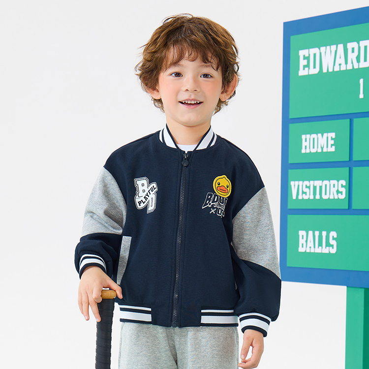 B.Duck小黄鸭童装儿童针织外套春春秋新款男童棒球服105-150 BF1607032