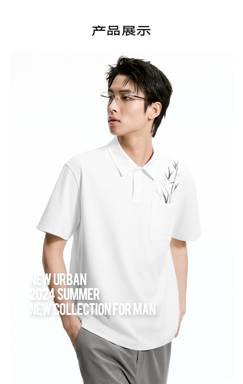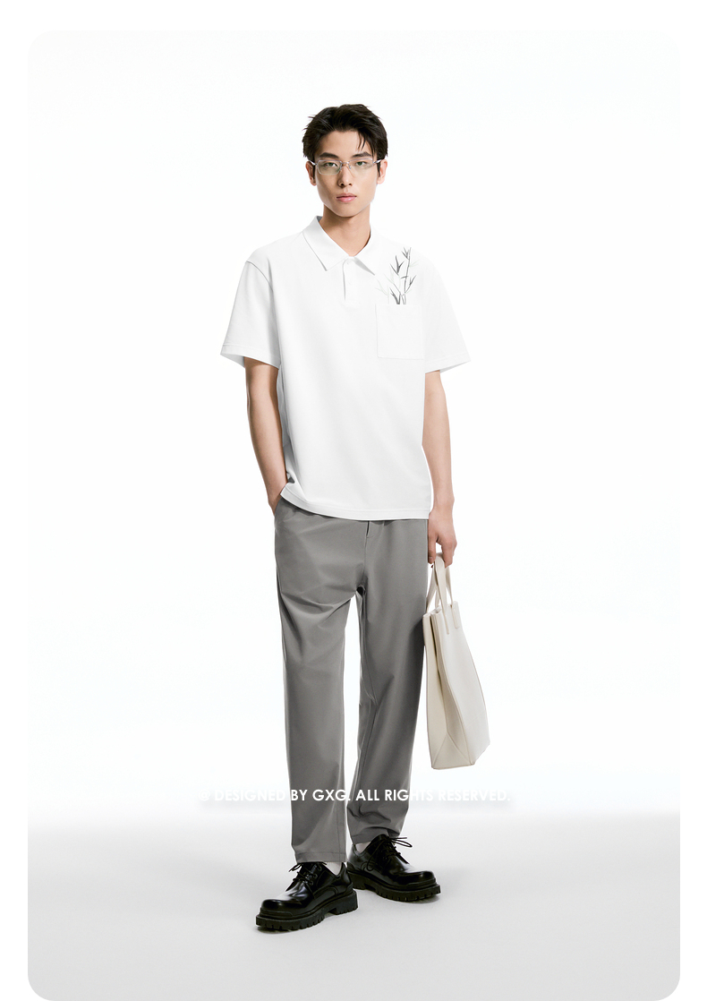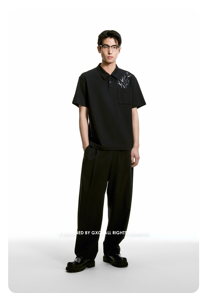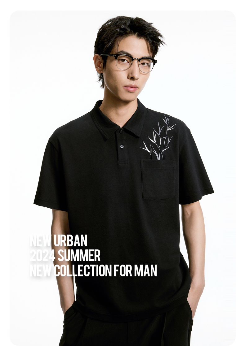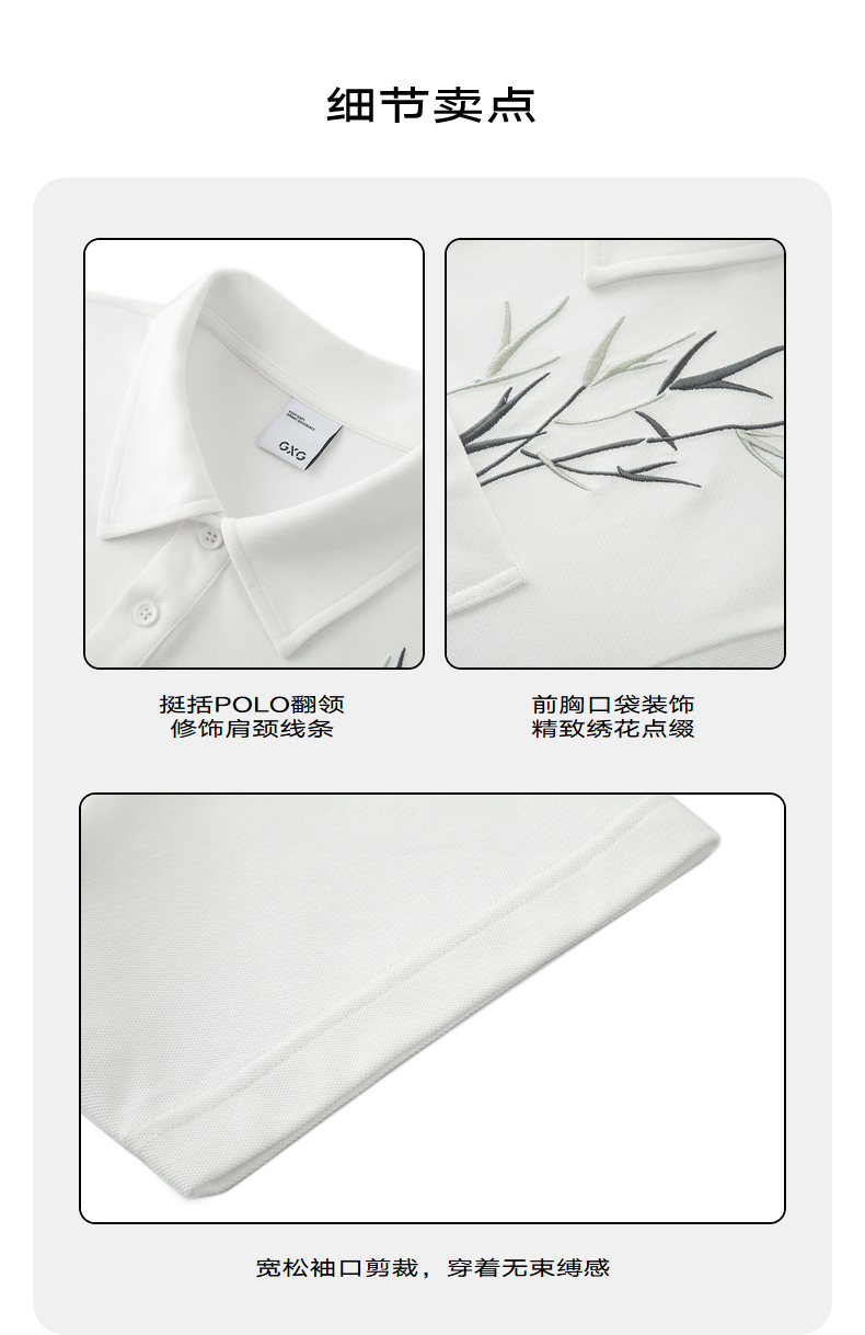 GXG男装 新中式刺绣国风设计感短袖polo衫男翻领短袖t恤 24夏热卖