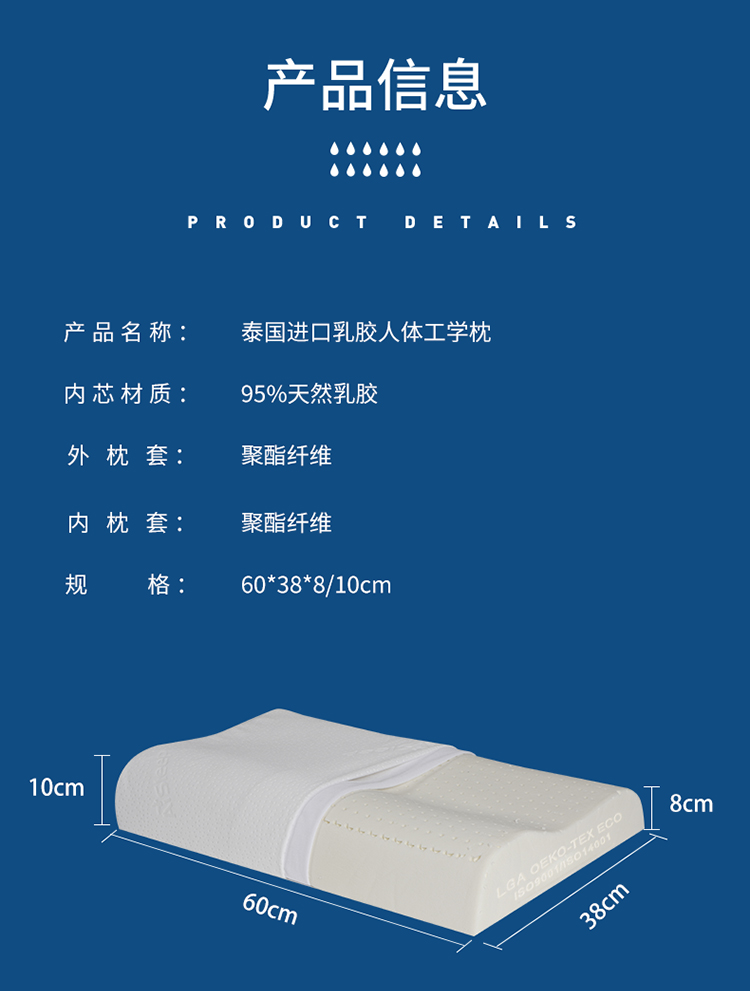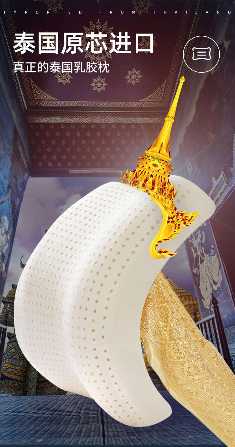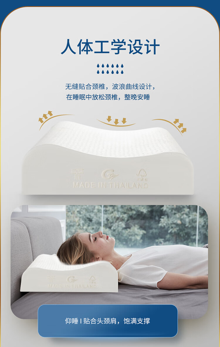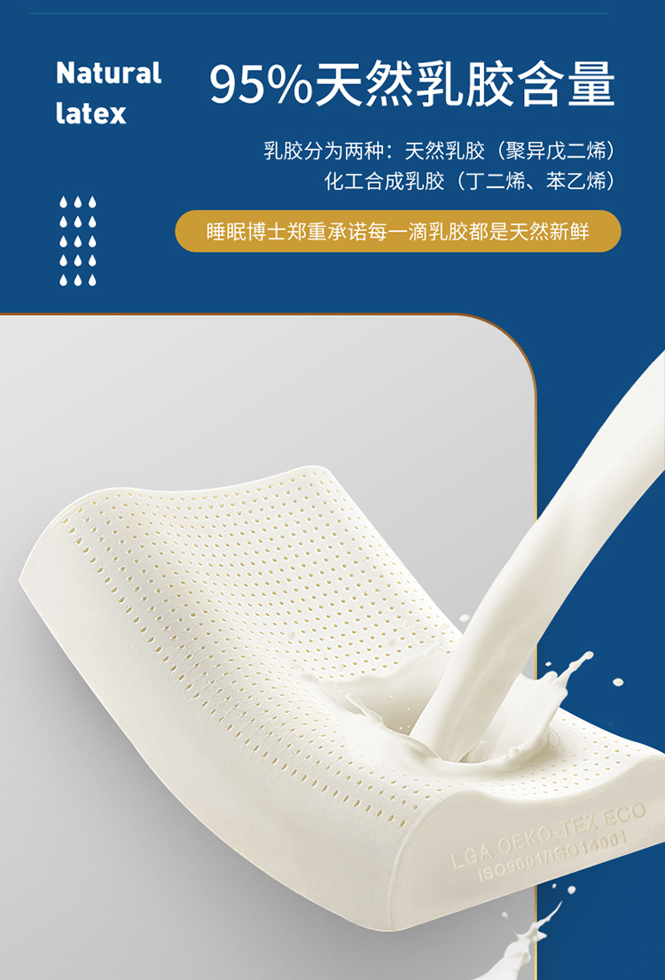 睡眠博士 泰国乳胶枕原装进口天然乳胶枕头成人泰国乳胶枕头芯 橡胶枕芯 成人颈椎枕头睡眠枕头 95%乳胶含量