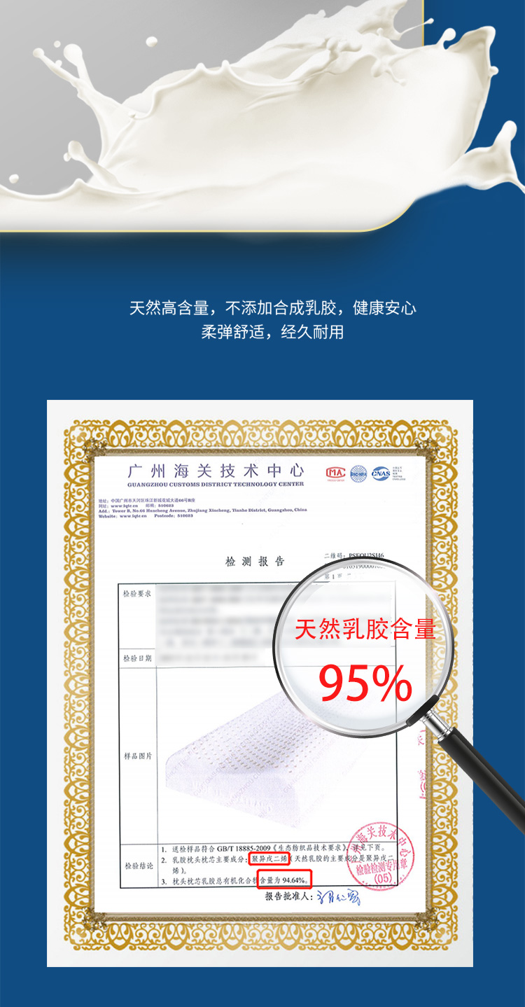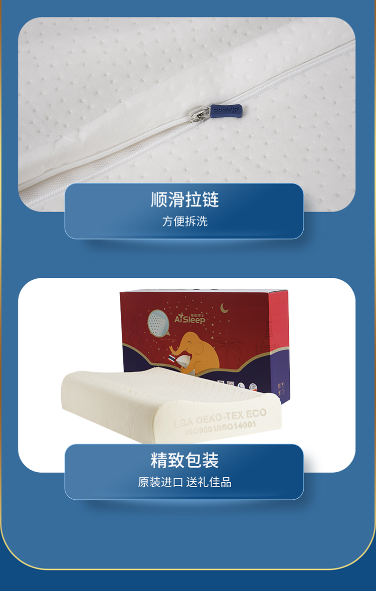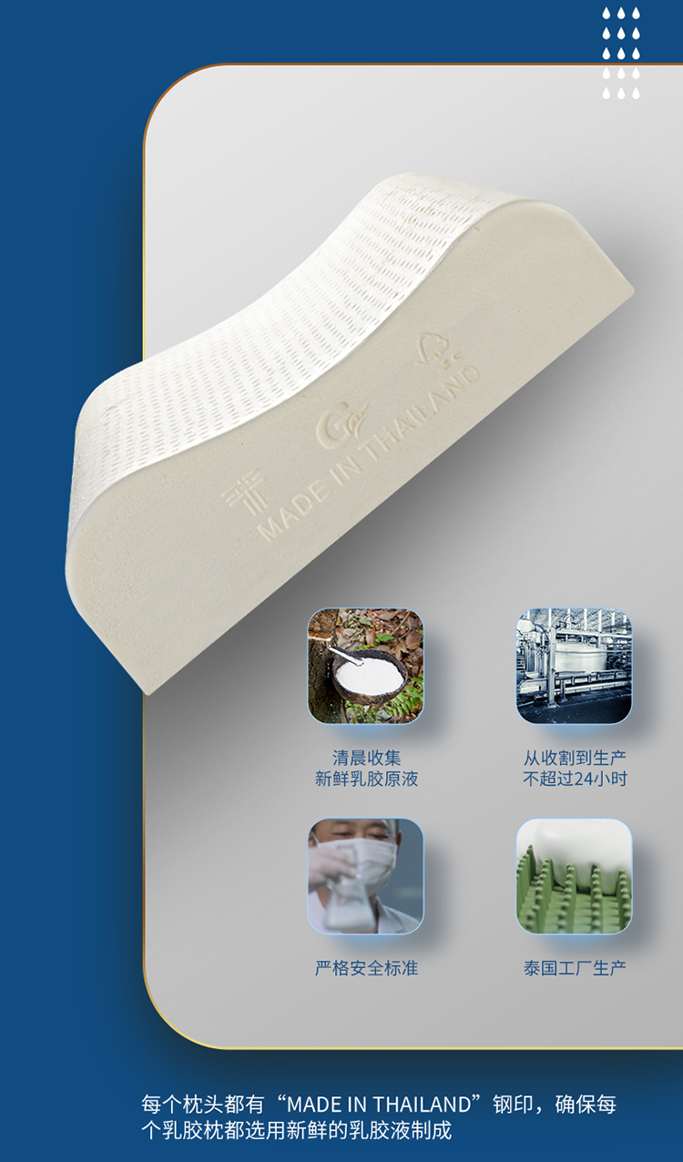 睡眠博士 泰国乳胶枕原装进口天然乳胶枕头成人泰国乳胶枕头芯 橡胶枕芯 成人颈椎枕头睡眠枕头 95%乳胶含量