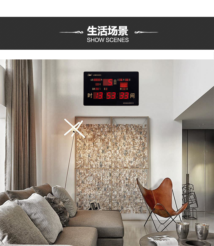 康巴丝(Compas)挂钟数码万年历电子钟客厅时钟方形大电子钟表静音铝合金边框客厅挂表308黑