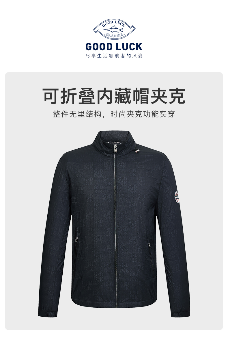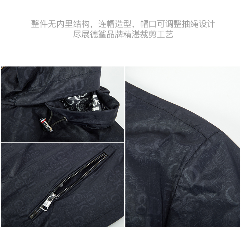 【内藏帽】德鲨春季新款连帽夹克男青年户外休闲提花薄款立领外套