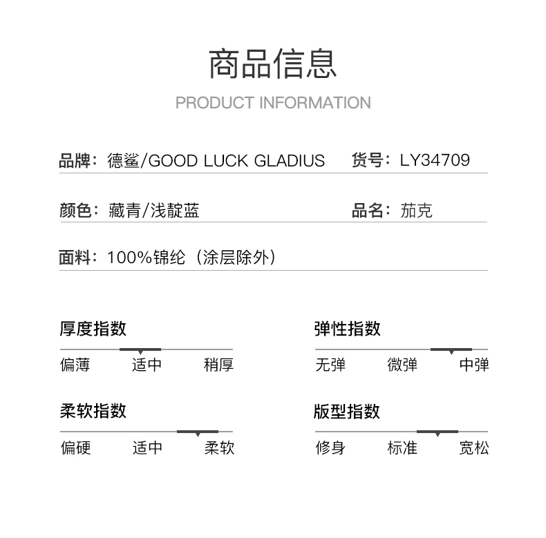 GOOD LUCK GLADIUS品牌由“浙江德鲨服饰有限公司”引进中国市场,经过多年发展,凭借完善的终端形象,规范化的销售管理,迅速赢得消费者的认可,引领国内消费流行,是成功人士首选男装品牌。
