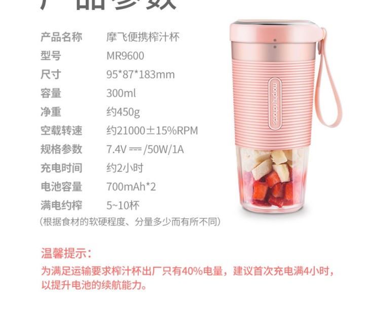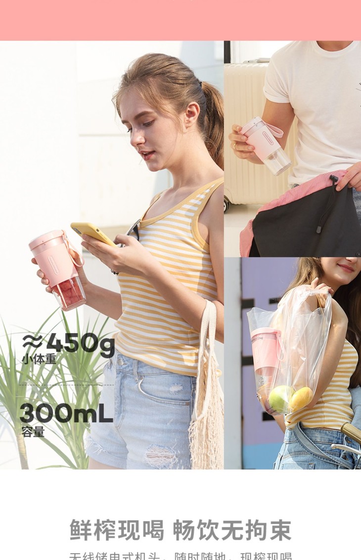 摩飞便携式榨汁机多功能家用小型无线充电动迷你水果汁料理榨汁杯