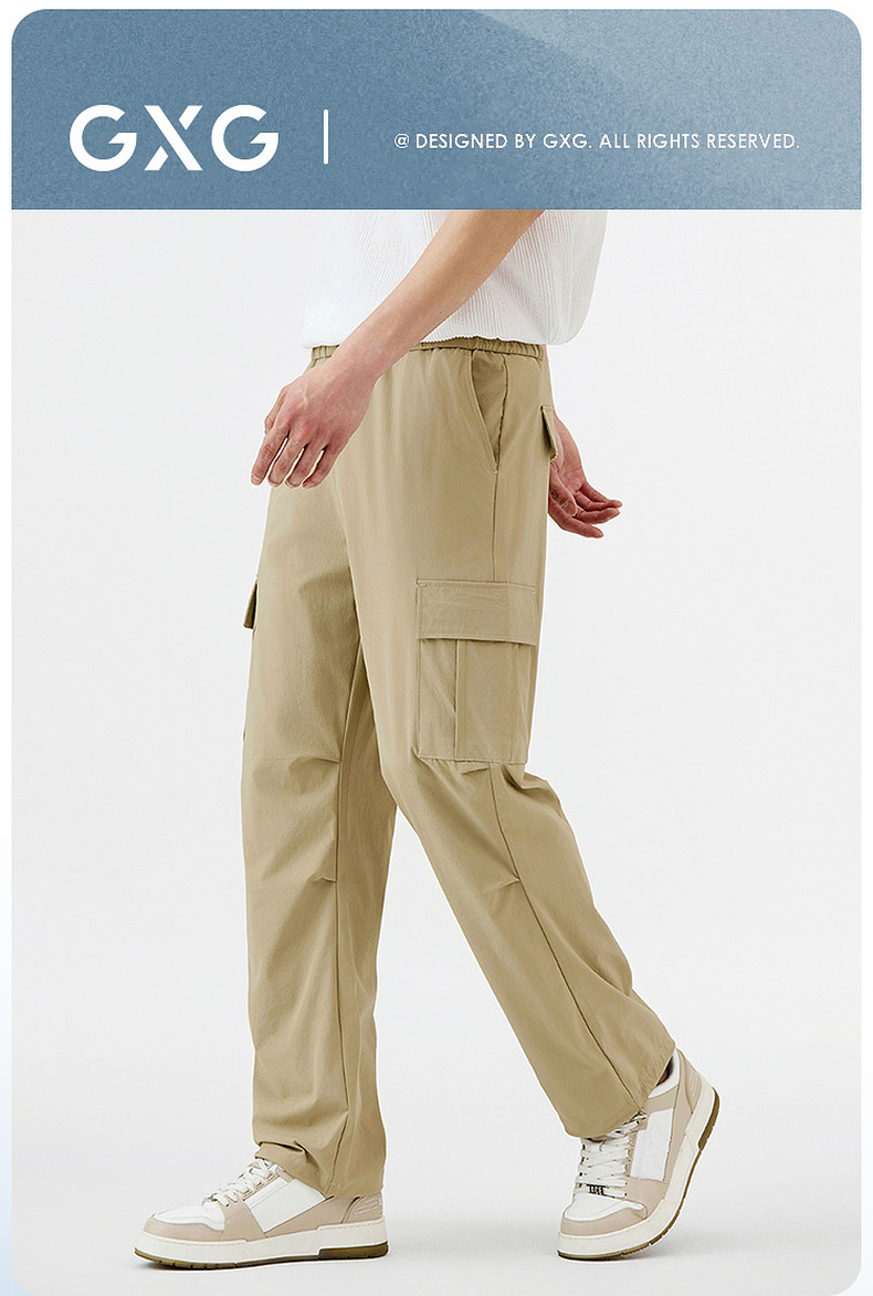 GXG男装【凉感透气】25春季户外防水防晒工装大口袋男式伞兵裤K&C