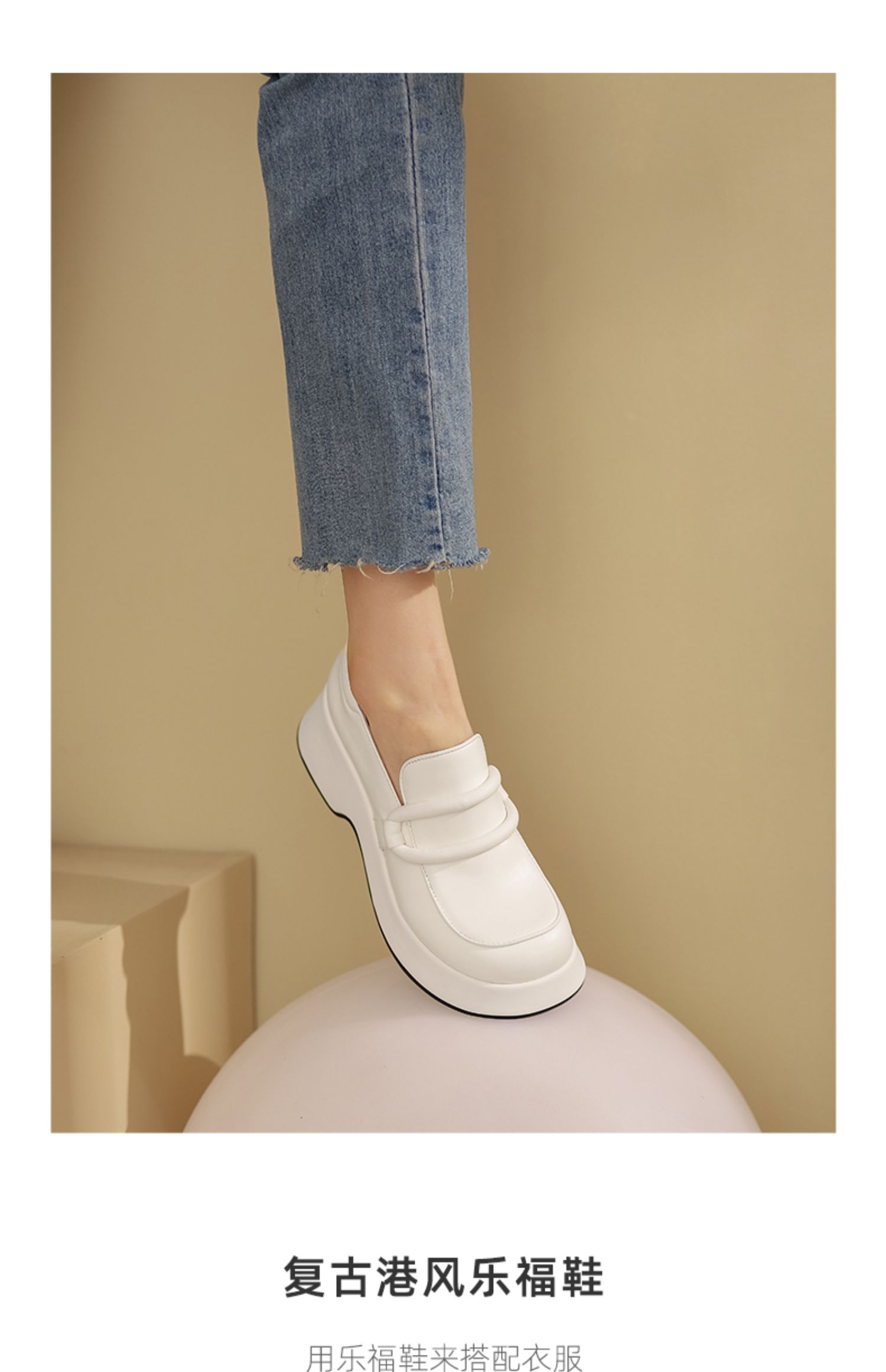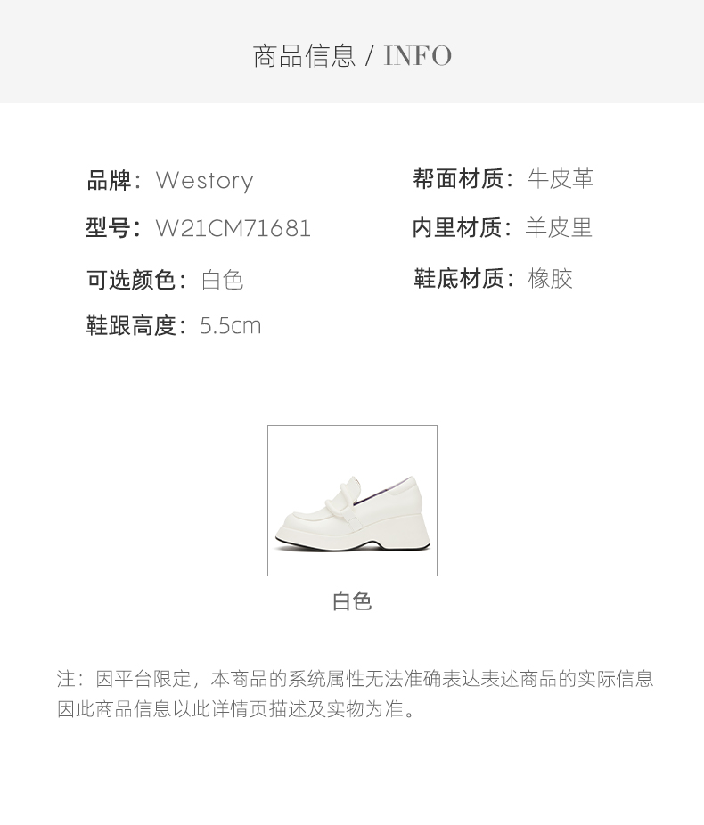 westory2021秋季新款单鞋厚底白色百搭时尚乐福鞋W21CM71681