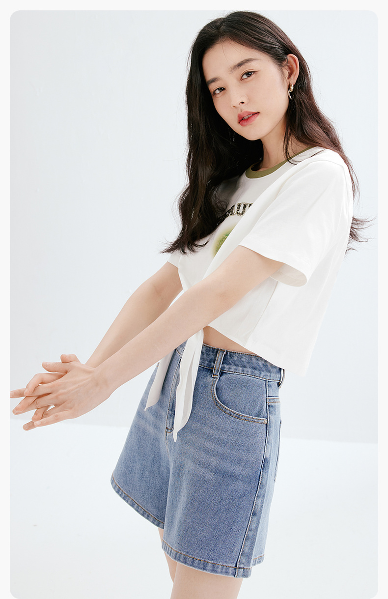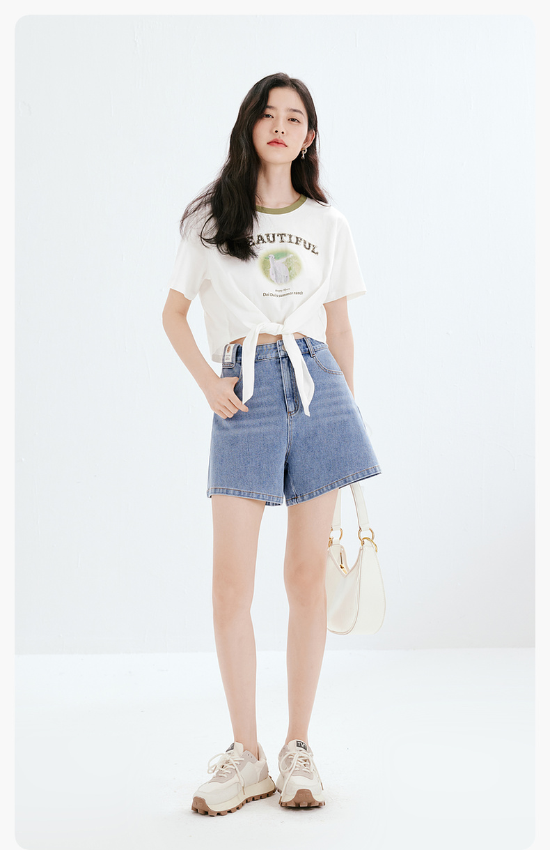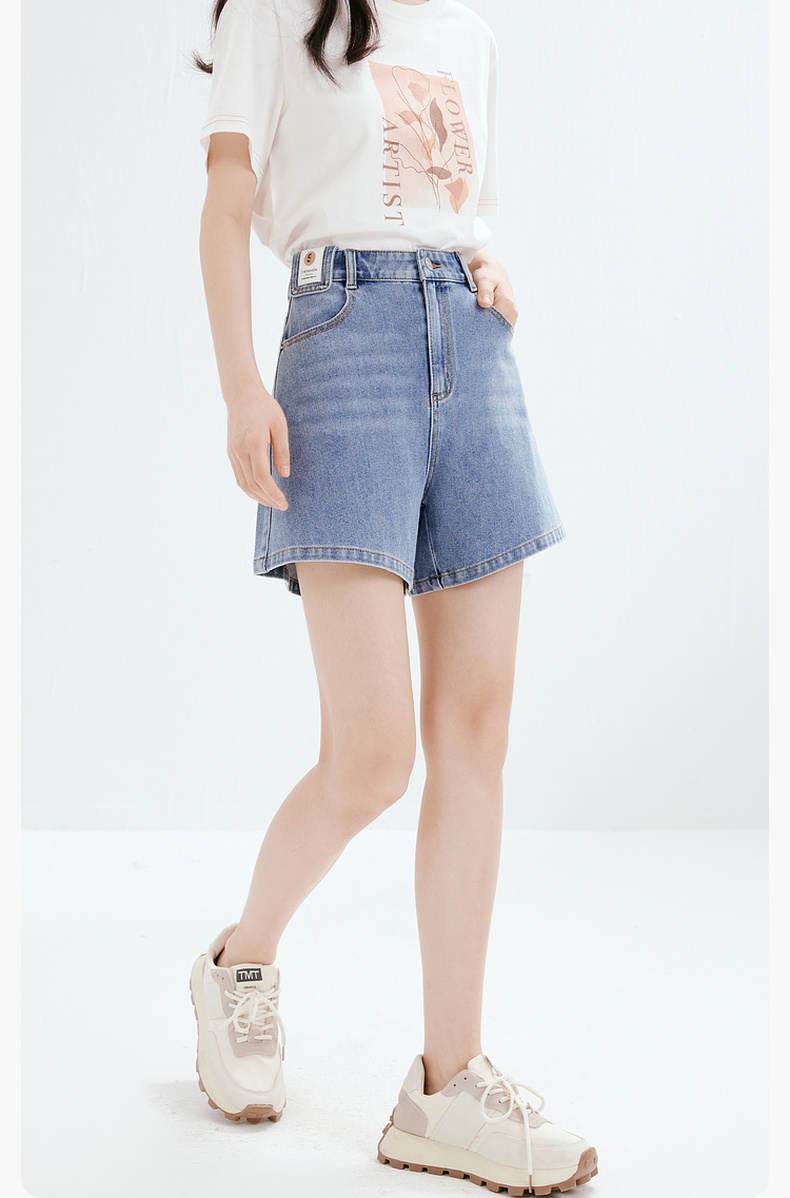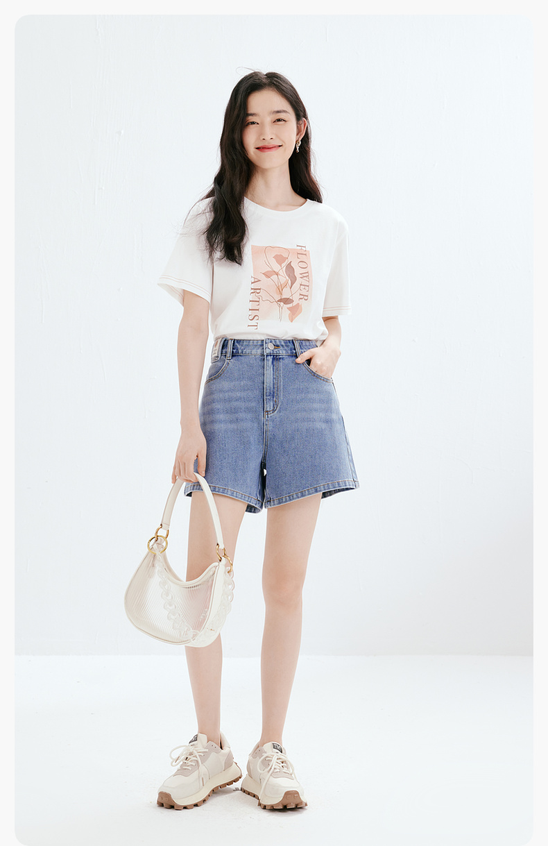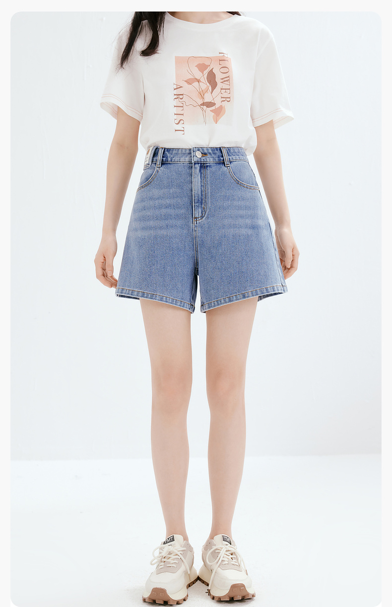 【商场同款】诗凡黎牛仔裤2023夏新款小个子微喇短裤女3E4451071