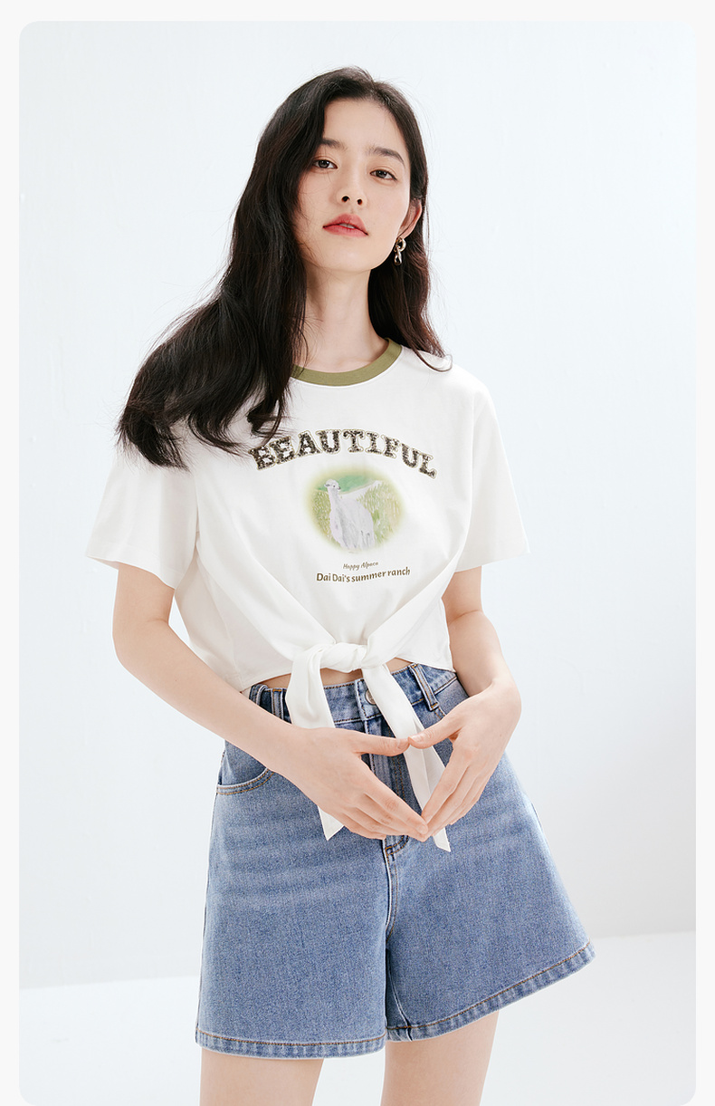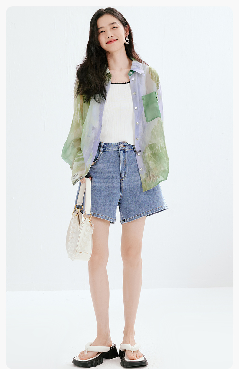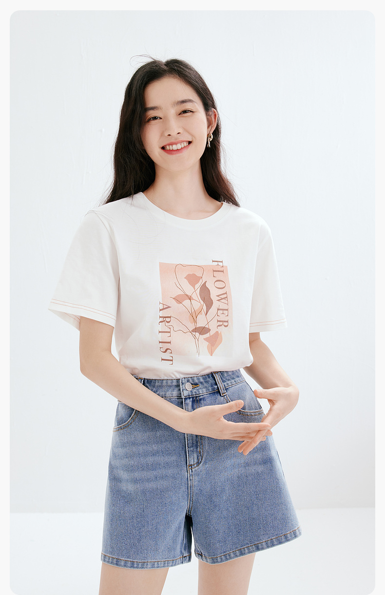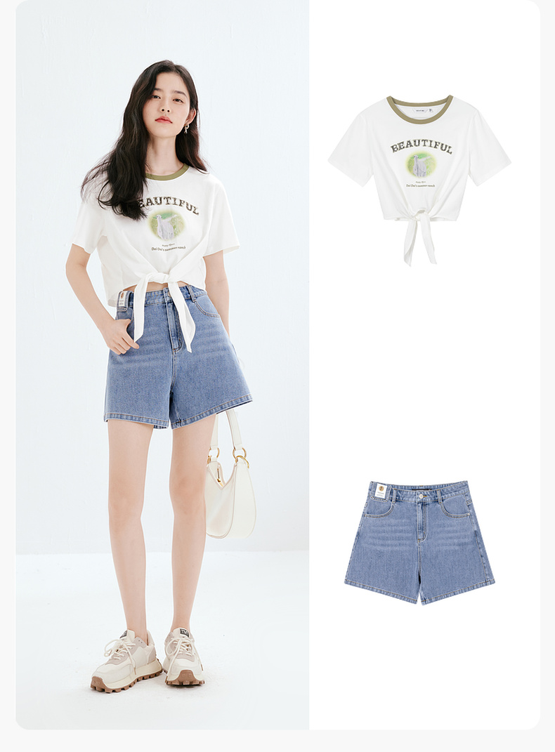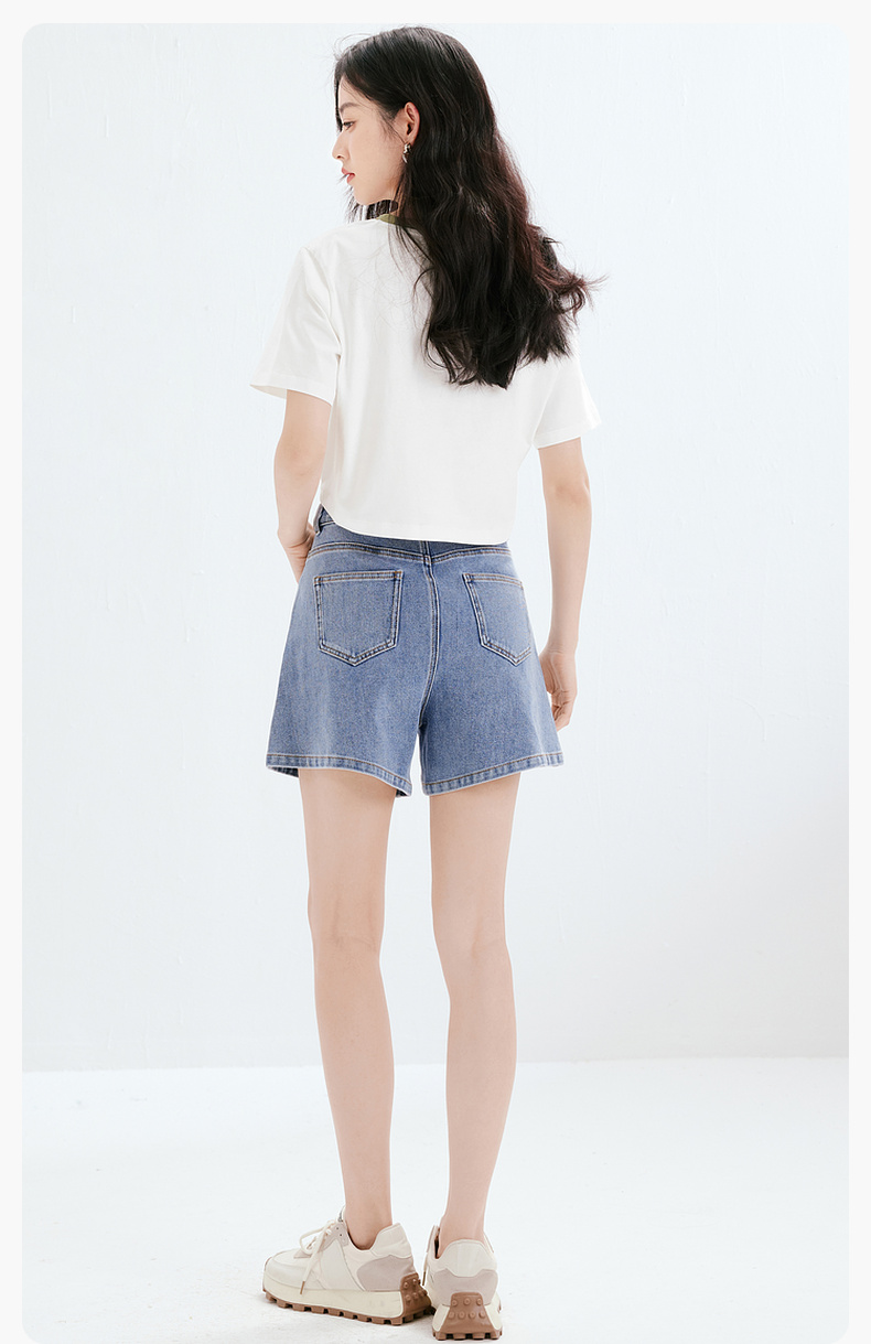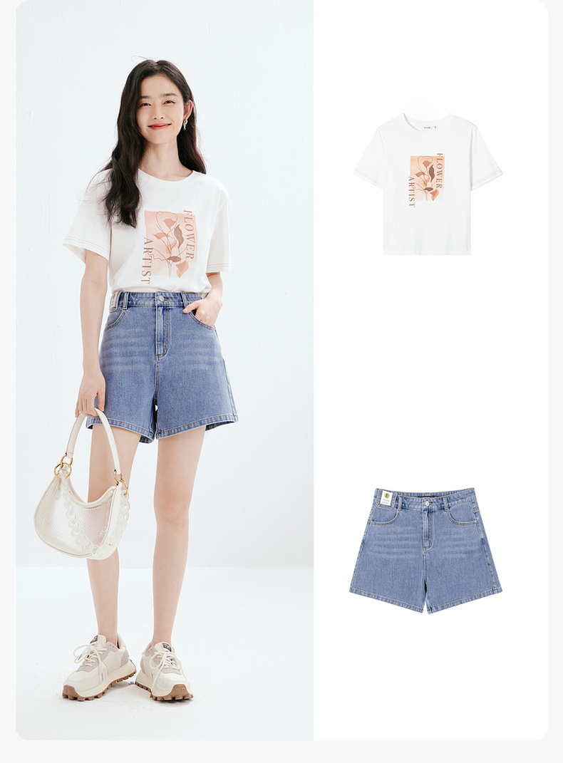 【商场同款】诗凡黎牛仔裤2023夏新款小个子微喇短裤女3E4451071