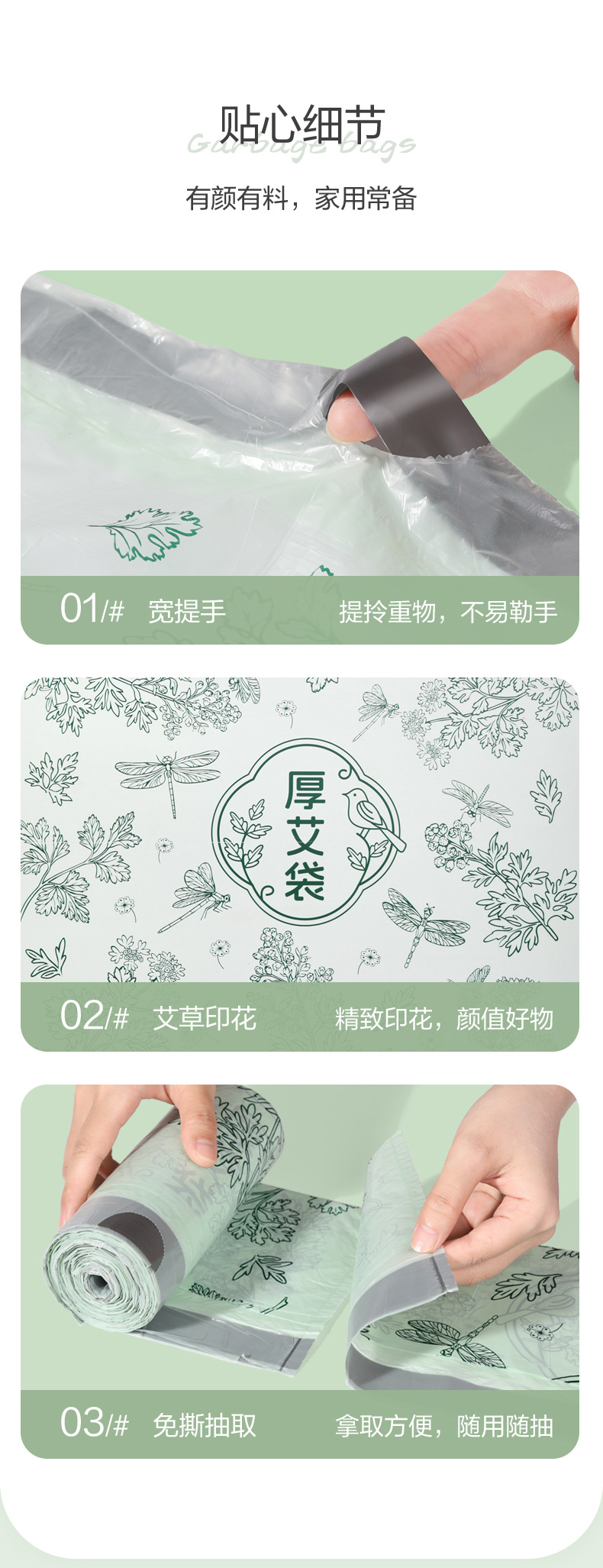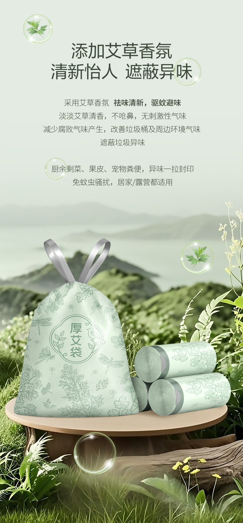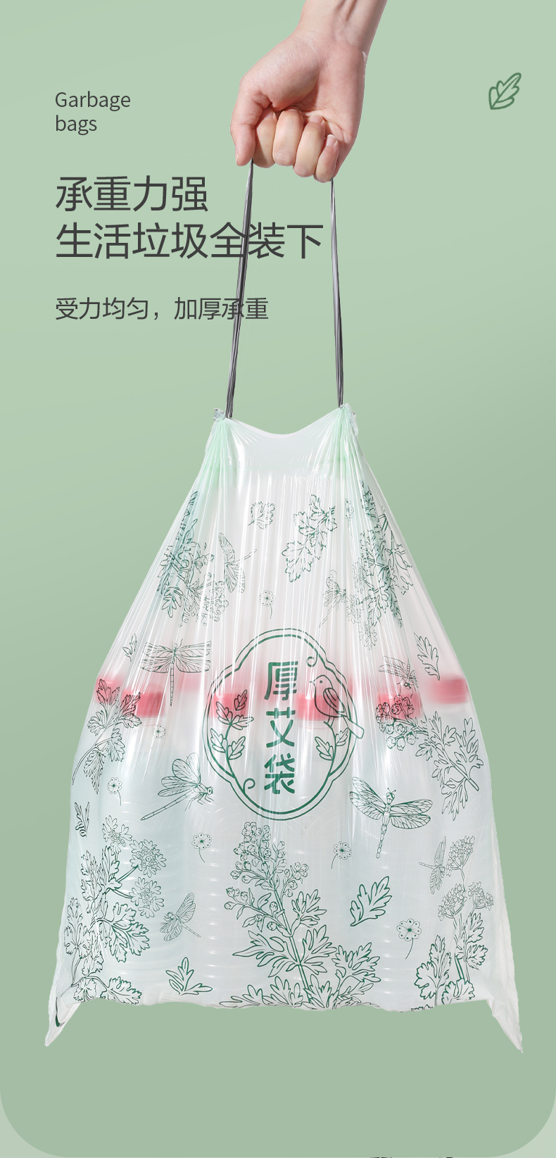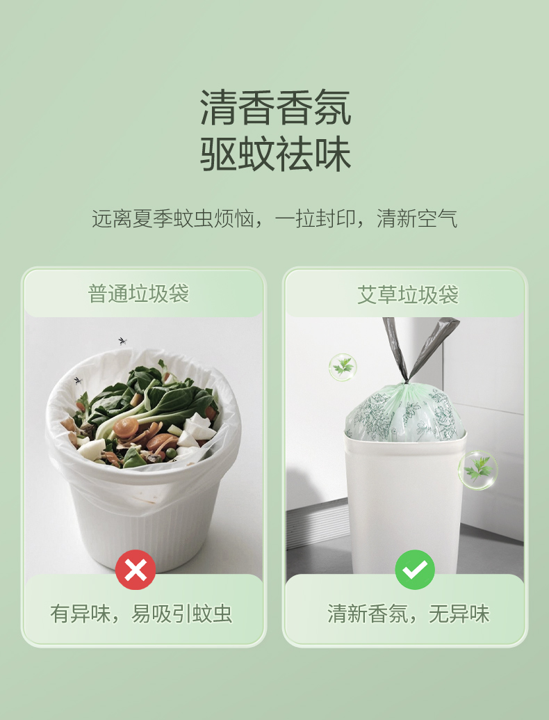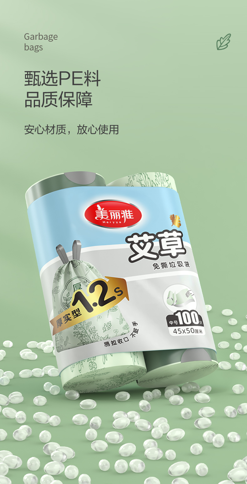 美丽雅抽绳垃圾袋100只加厚1.2丝45*50cm免撕艾草味厨房家用驱蚊垃圾袋