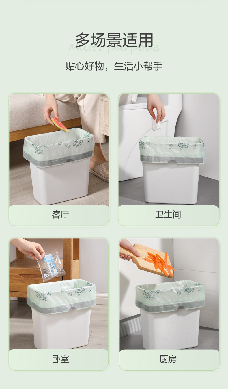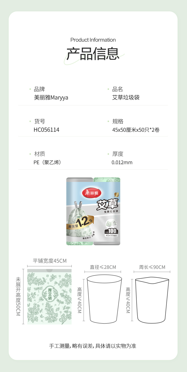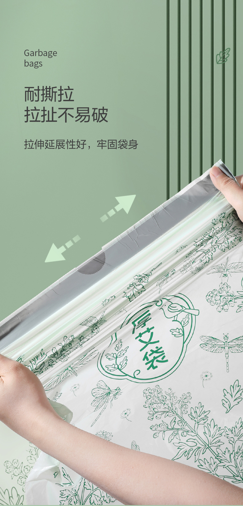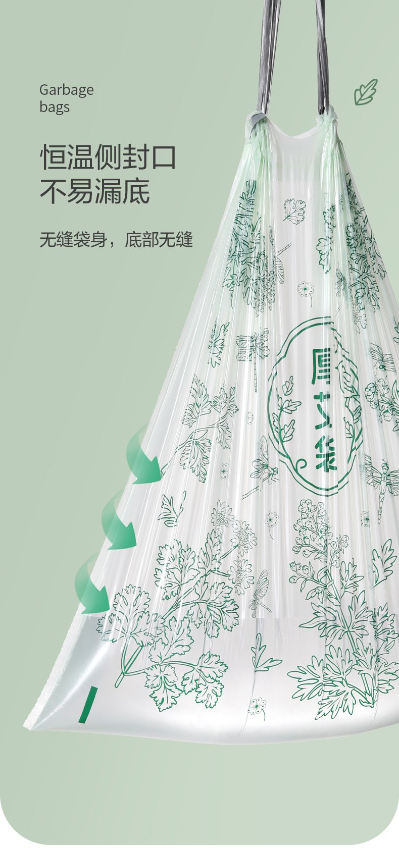 美丽雅抽绳垃圾袋100只加厚1.2丝45*50cm免撕艾草味厨房家用驱蚊垃圾袋