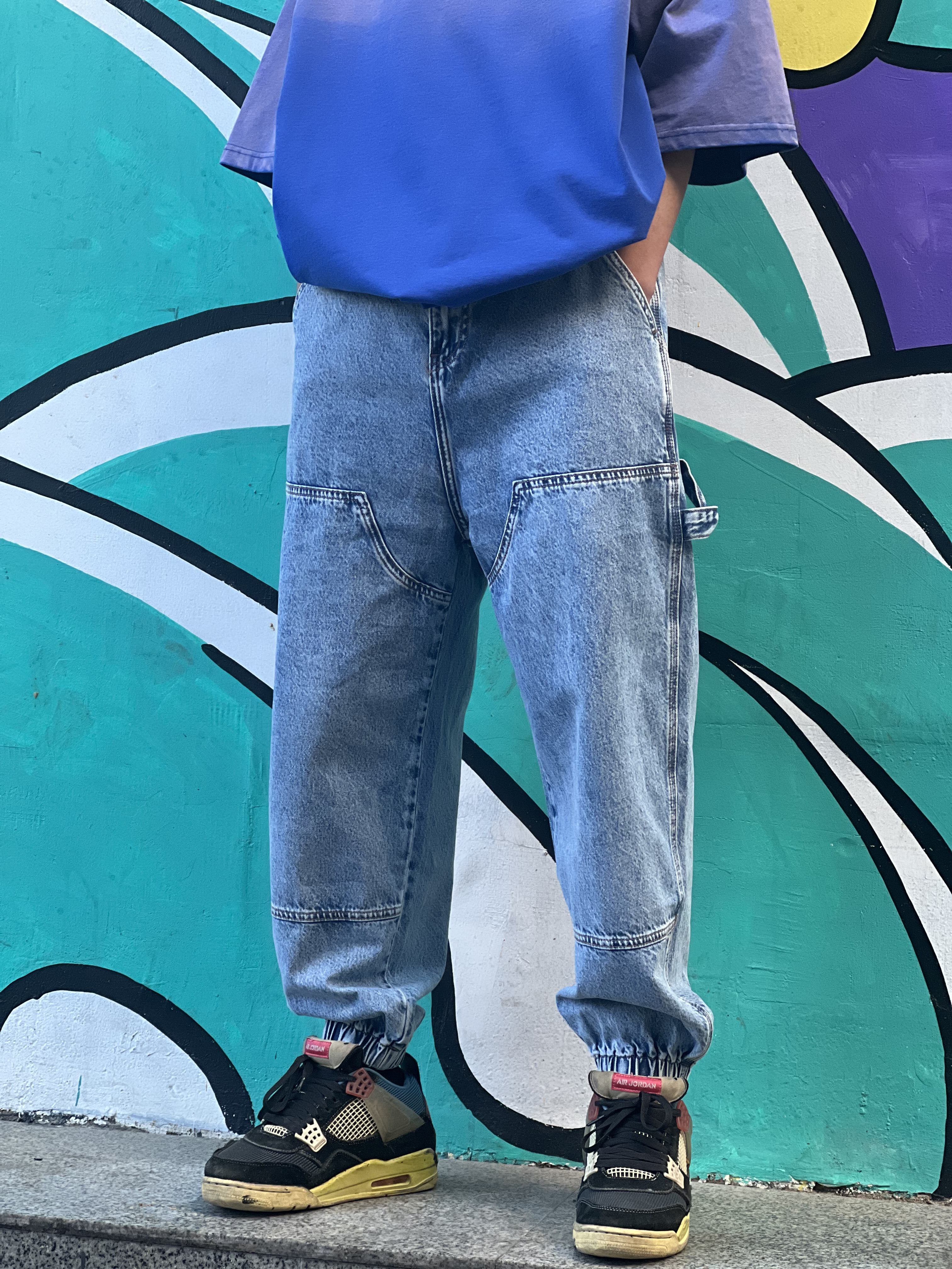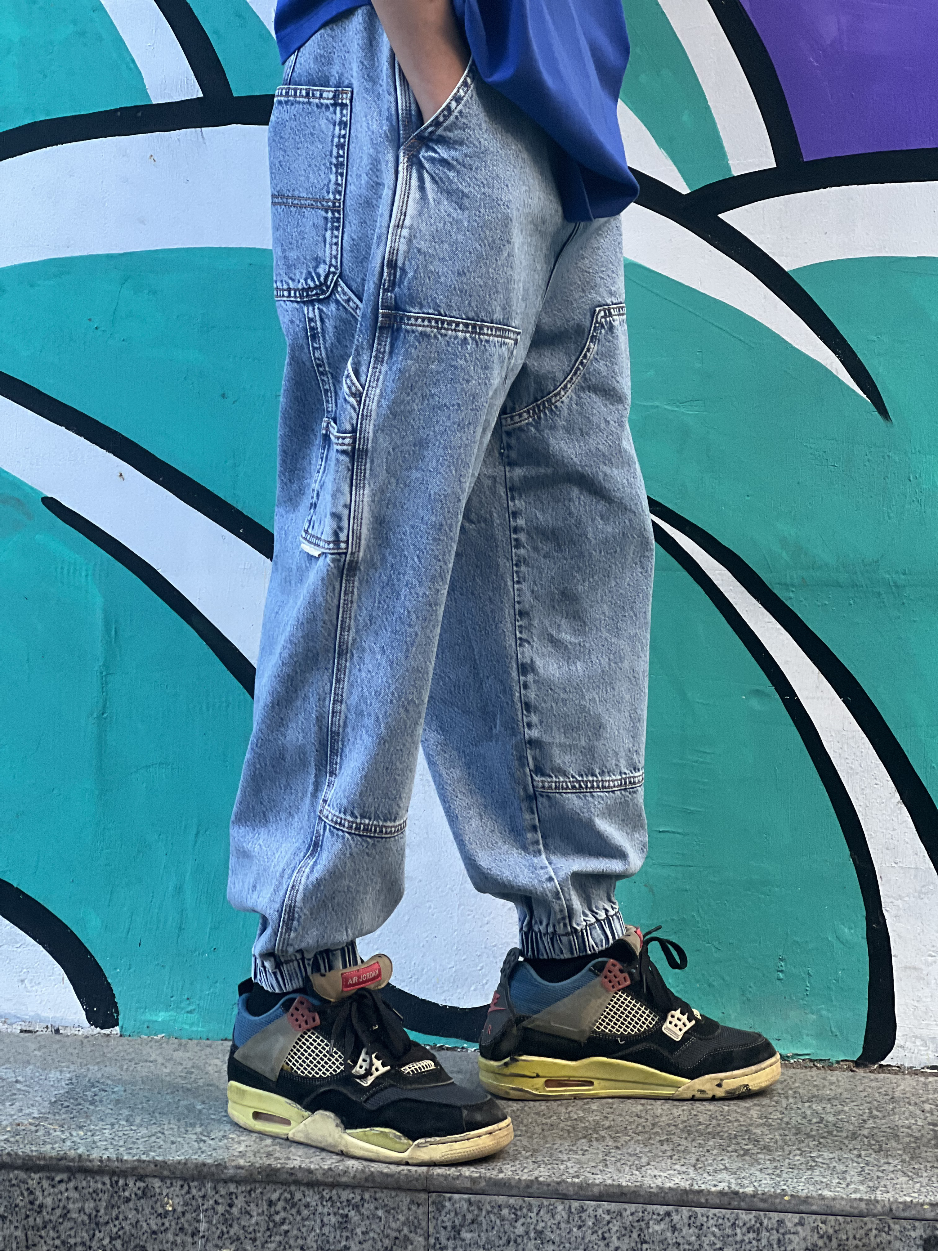 W319231513时尚分割束脚牛仔裤