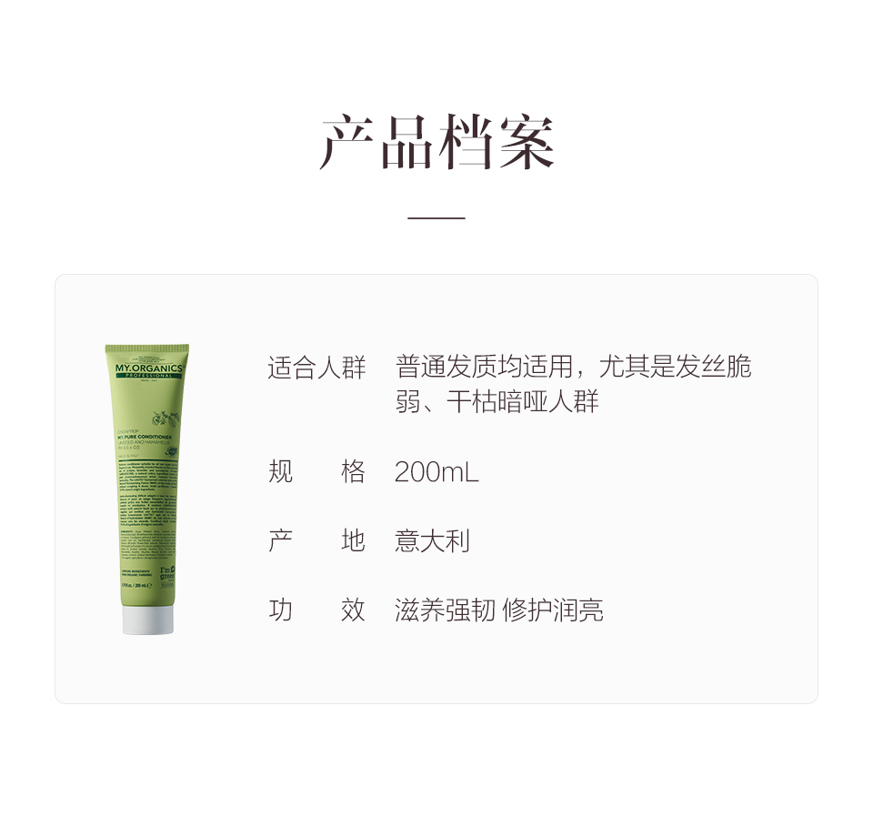 保税直发 MY.ORGANICS 纯净护发素 200mL/套组【新包装】